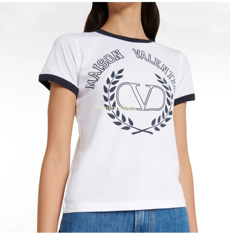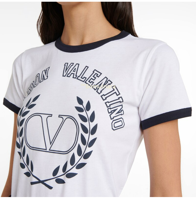 VALENTINO-발렌티노 화이트 로고 프린트 크루넥 티 셔츠 여성