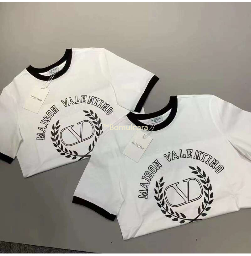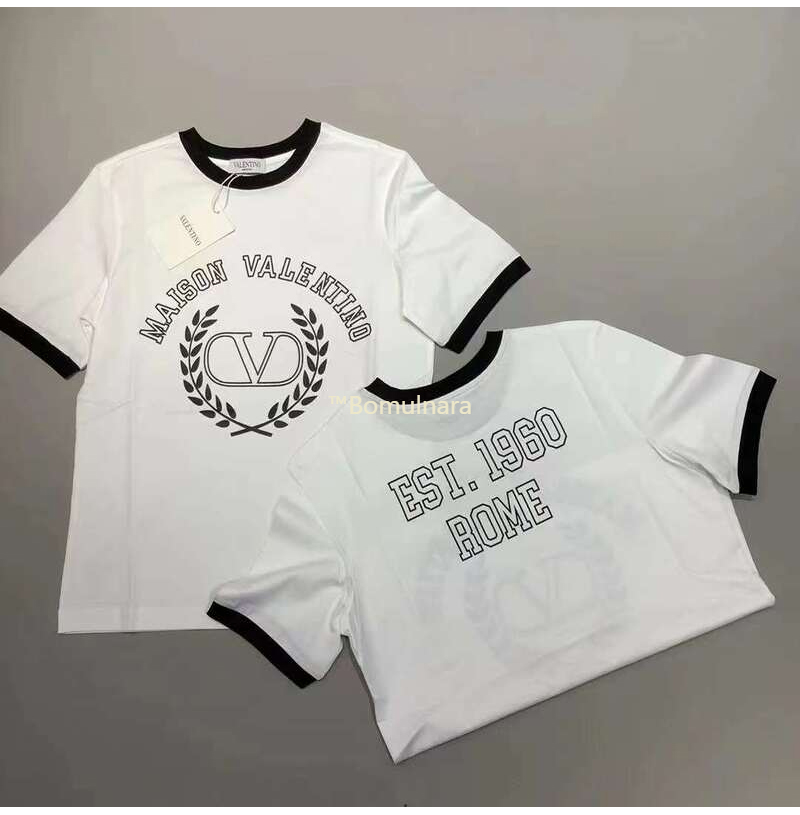 VALENTINO-발렌티노 화이트 로고 크루넥 티 셔츠