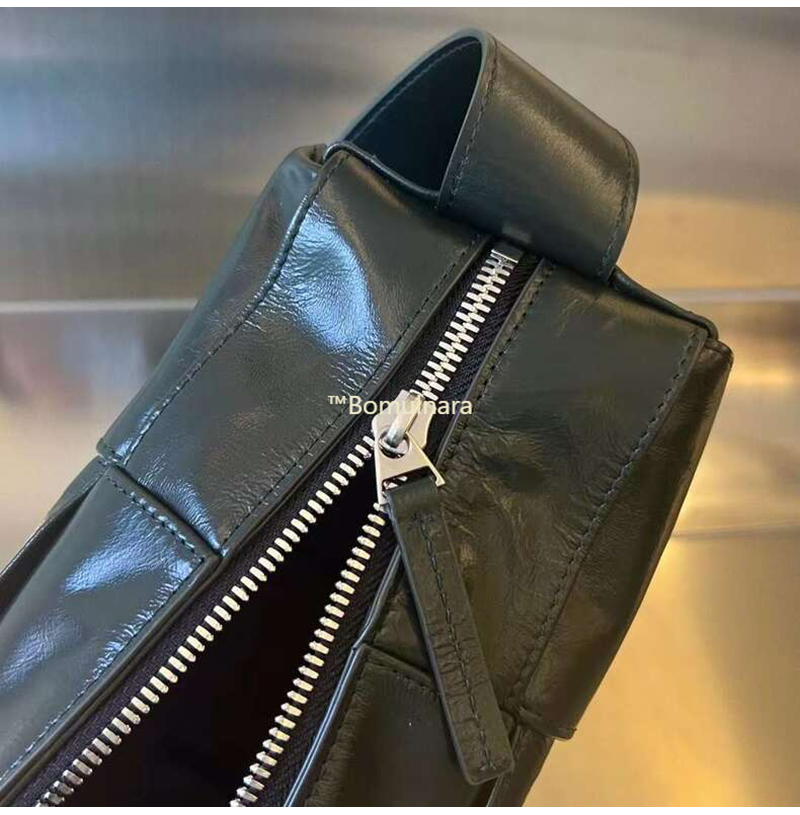 [스페셜오더]BOTTEGA VENETA-731165 보테가 베네타 블랙/패럿 그린 아르코 크로스바디 카메라 백 28CM