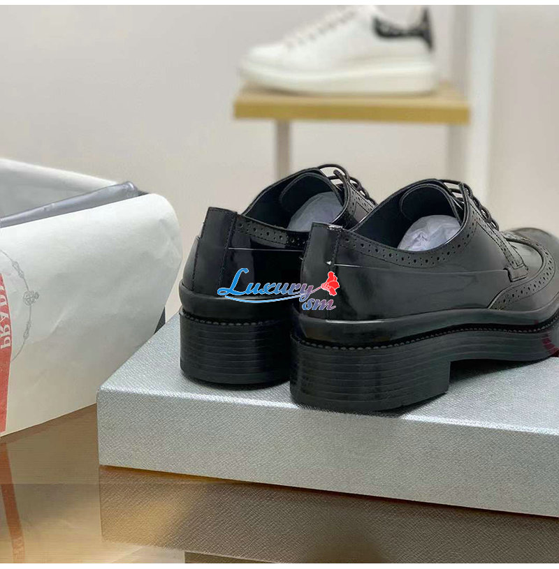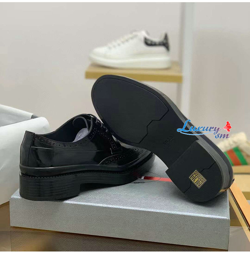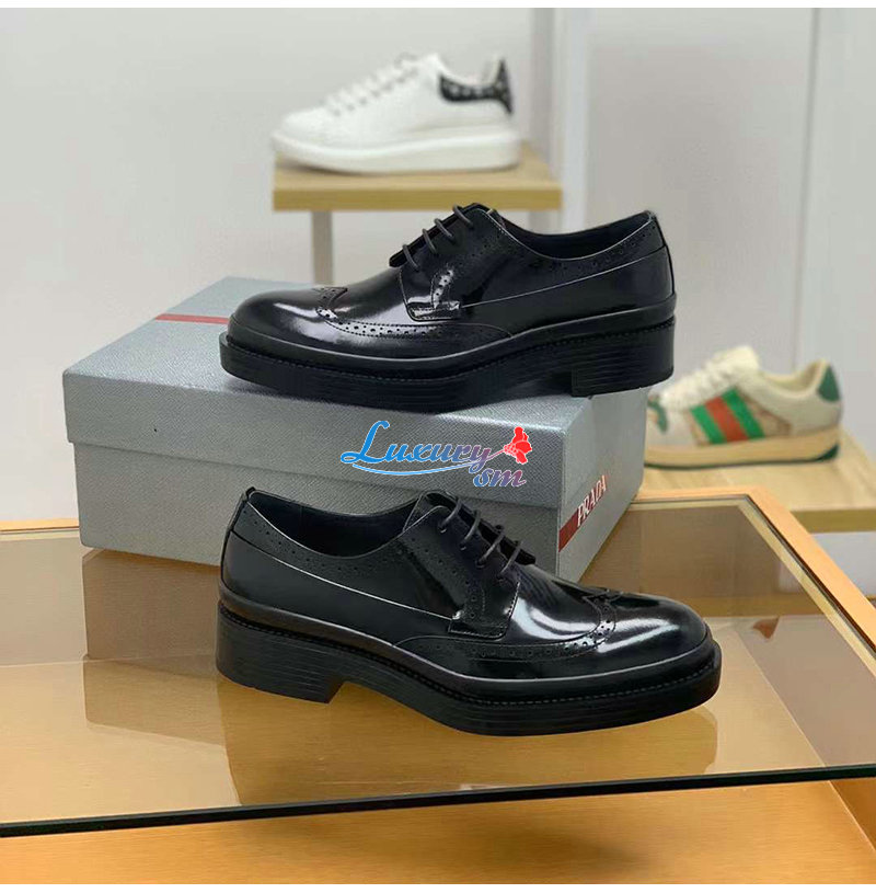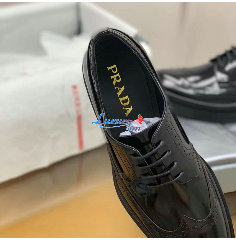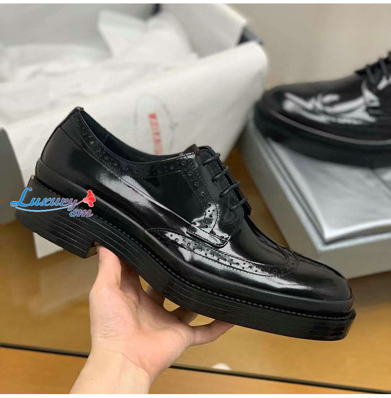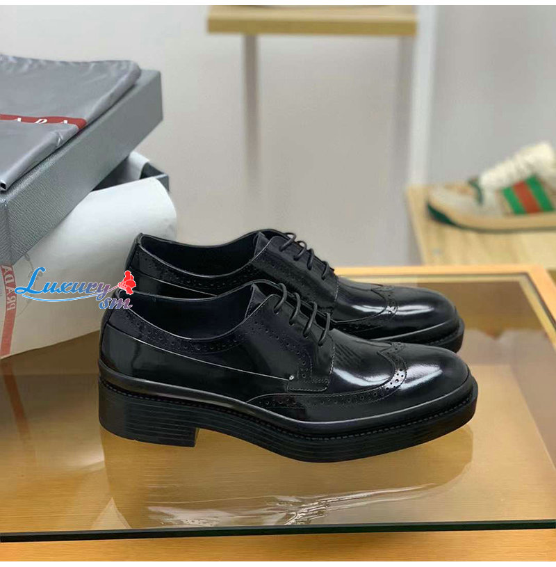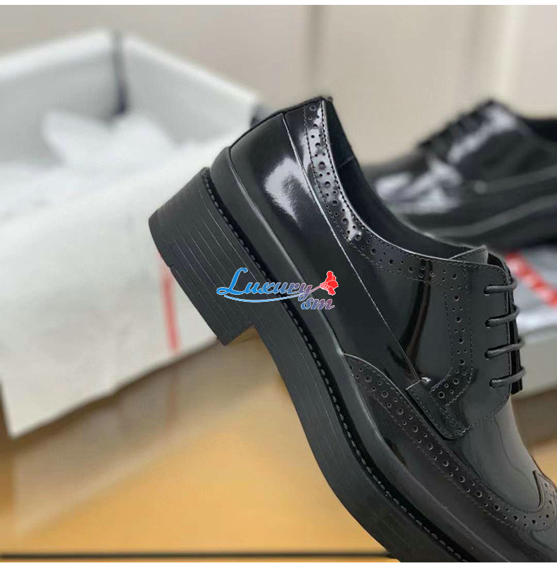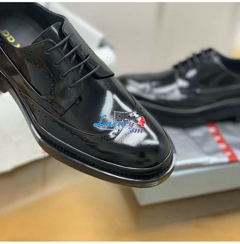 PRADA-03093 프라다 블랙 블러시드 가죽 레이스업 남성용