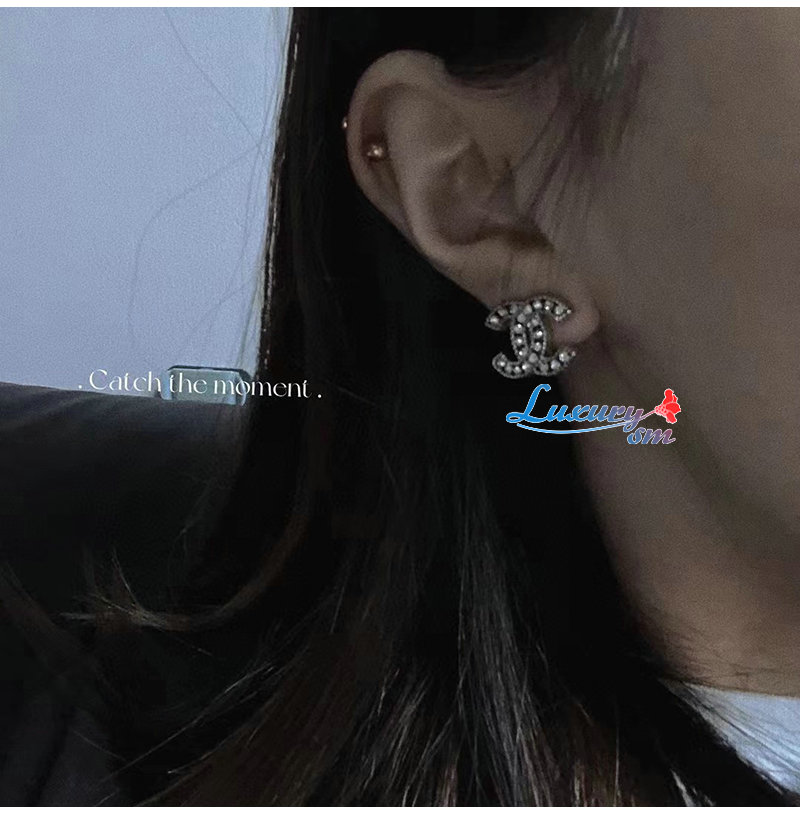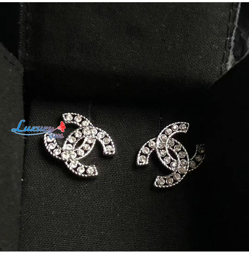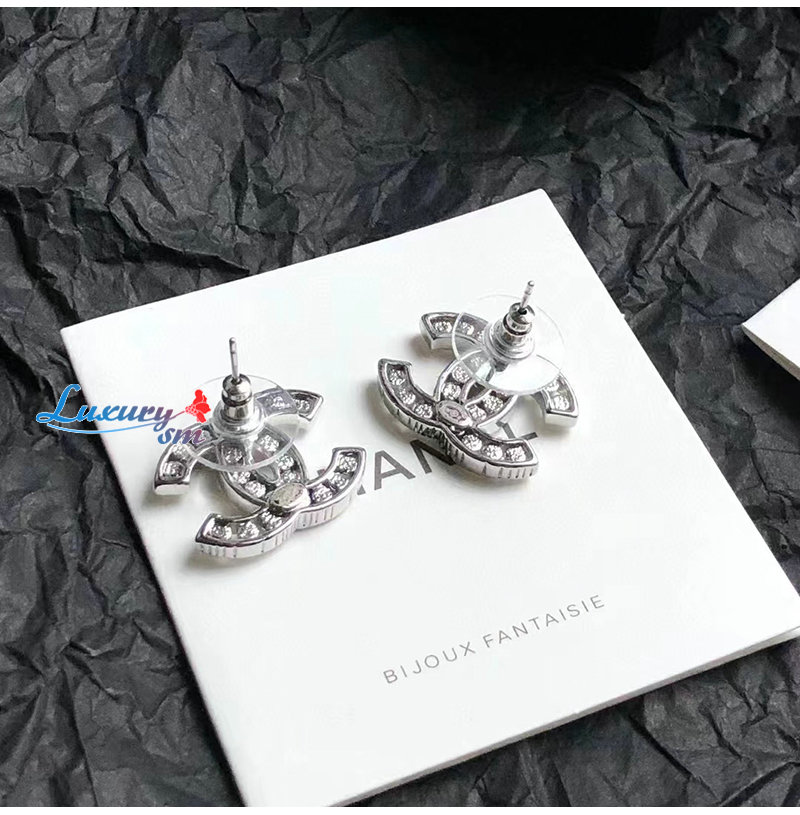 CHANEL-7133 샤넬 실버 크리스탈 장식 CC 로고 귀걸이