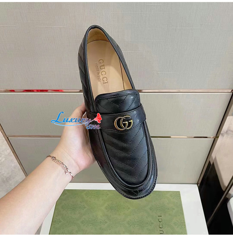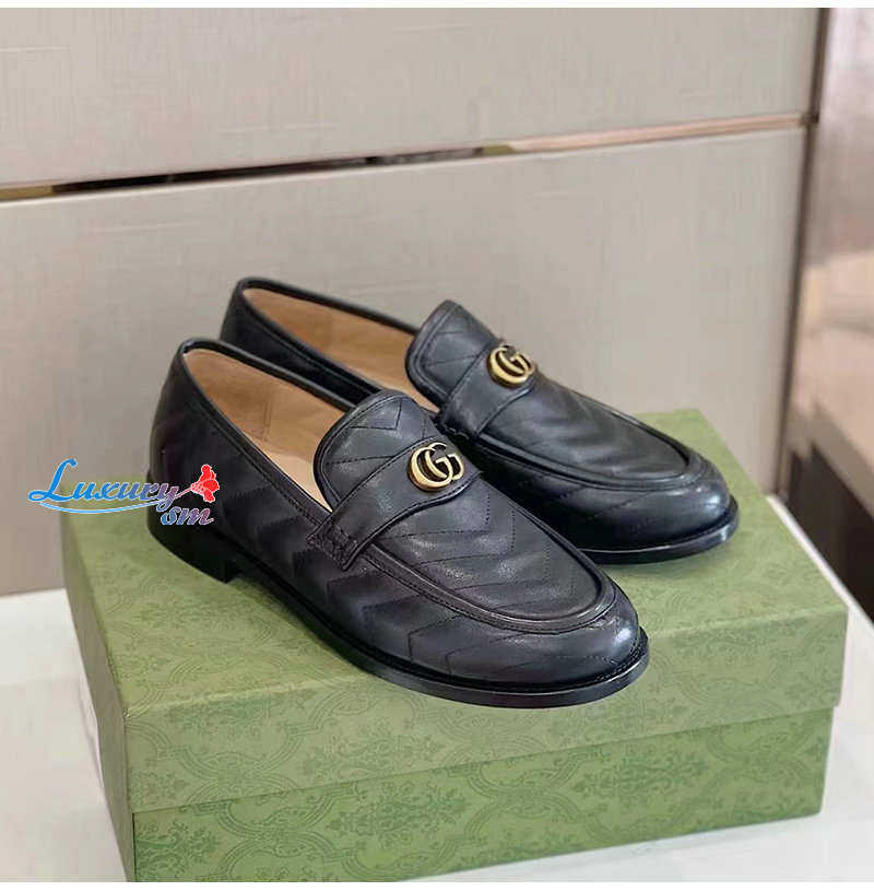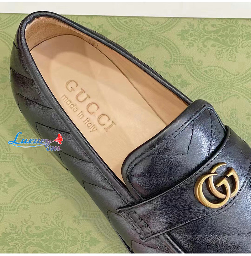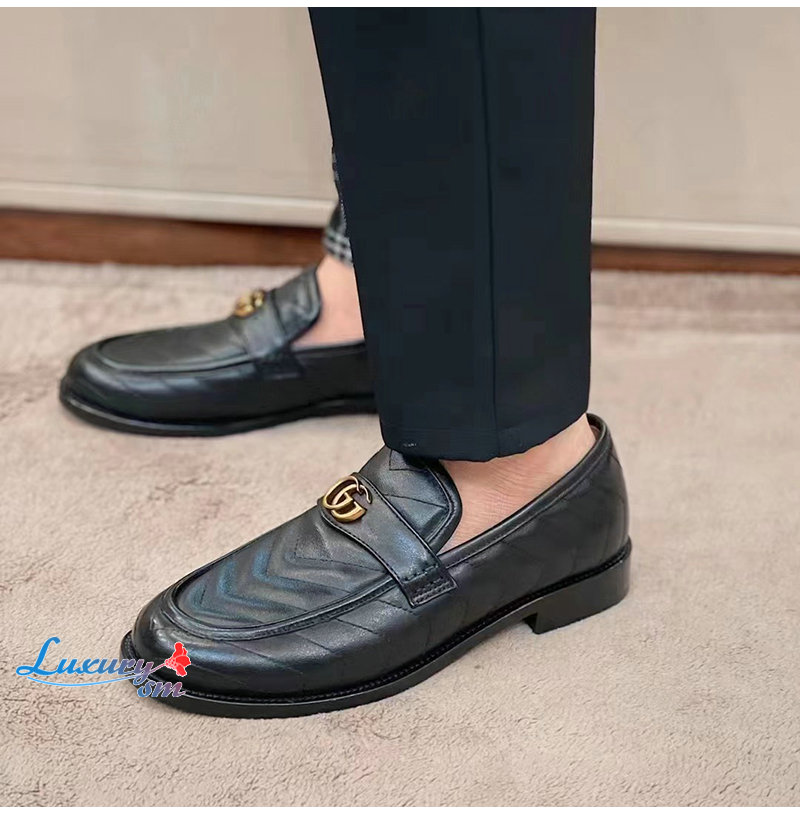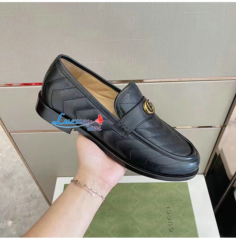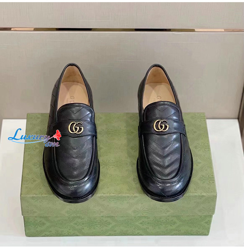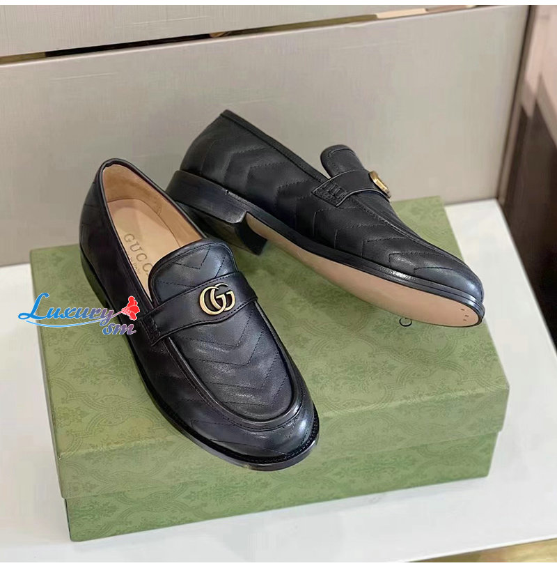 GUCCI-670399 1000 구찌 블랙 마틀라세 가죽 더블 G 로퍼 남성용