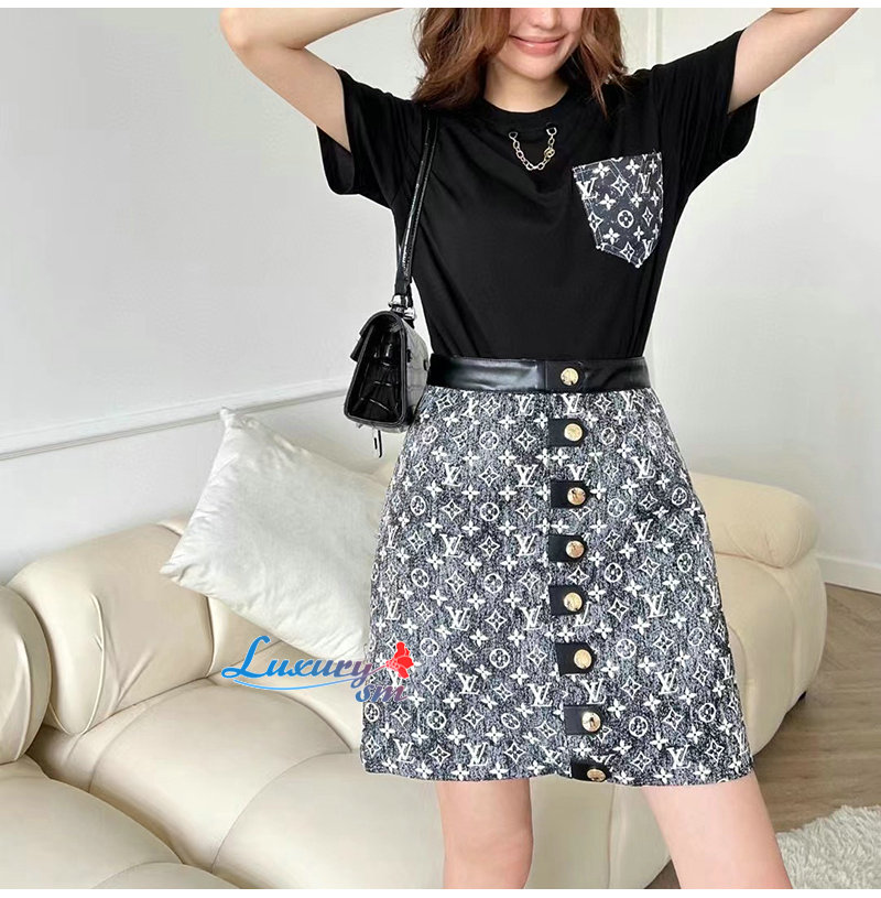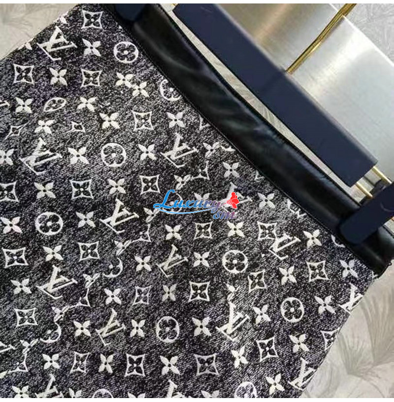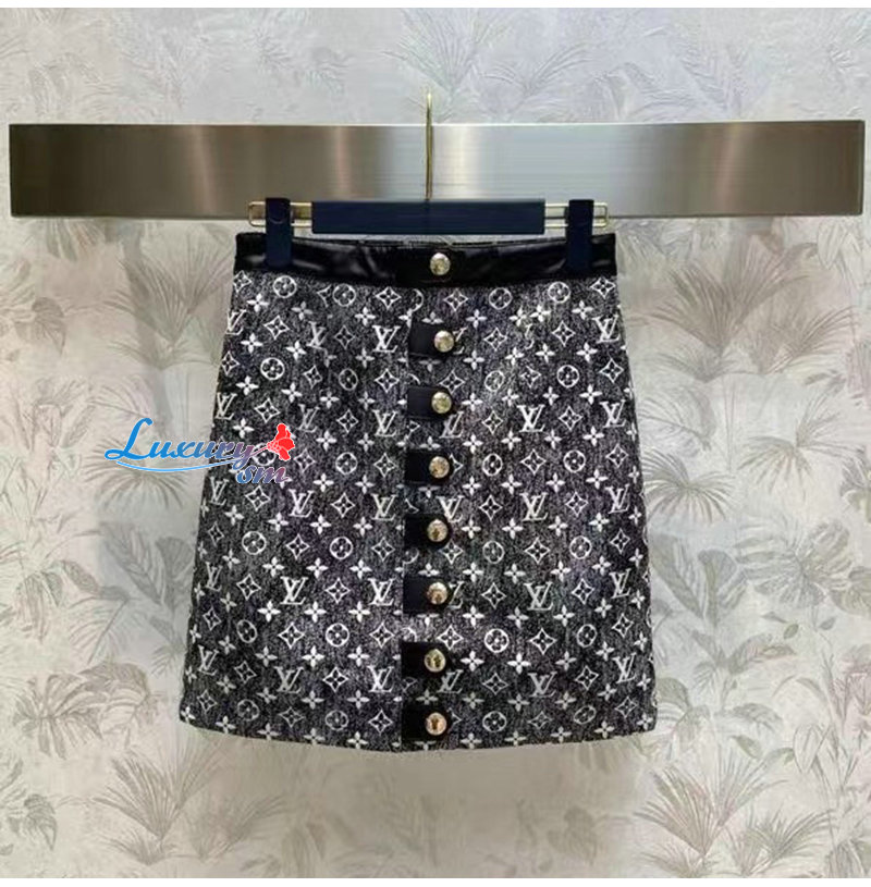 LOUIS VUITTON-1AAUP4 루이비통 그레이 모노그램 데님 버튼 탭 스커트