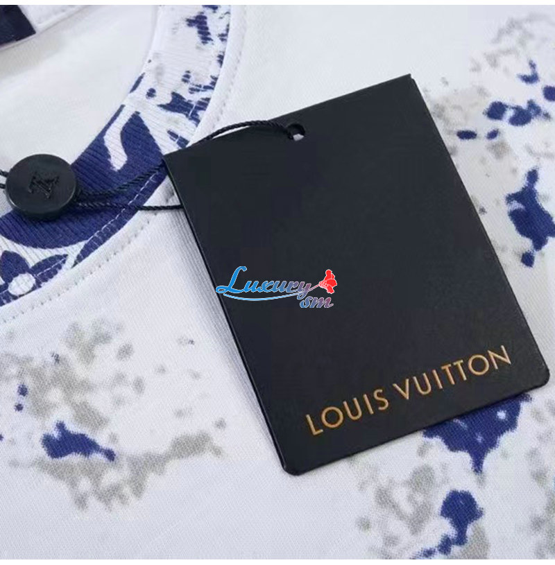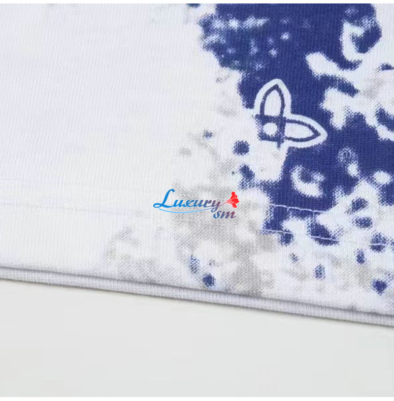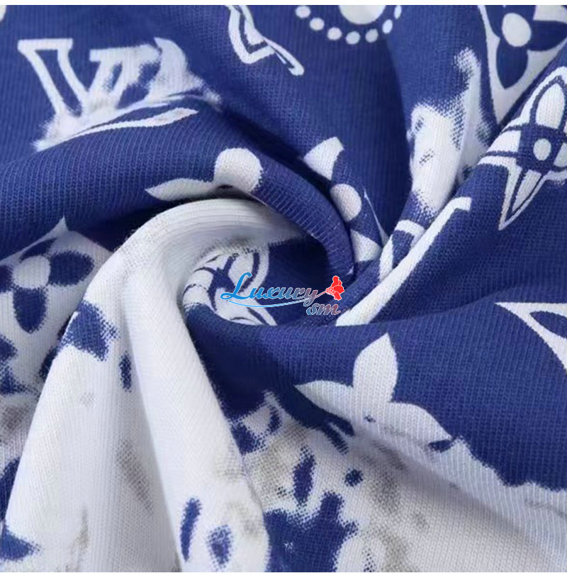 LOUIS VUITTON-03191 루이비통 블루 모노그램 프린트 장식 티셔츠 남여공용