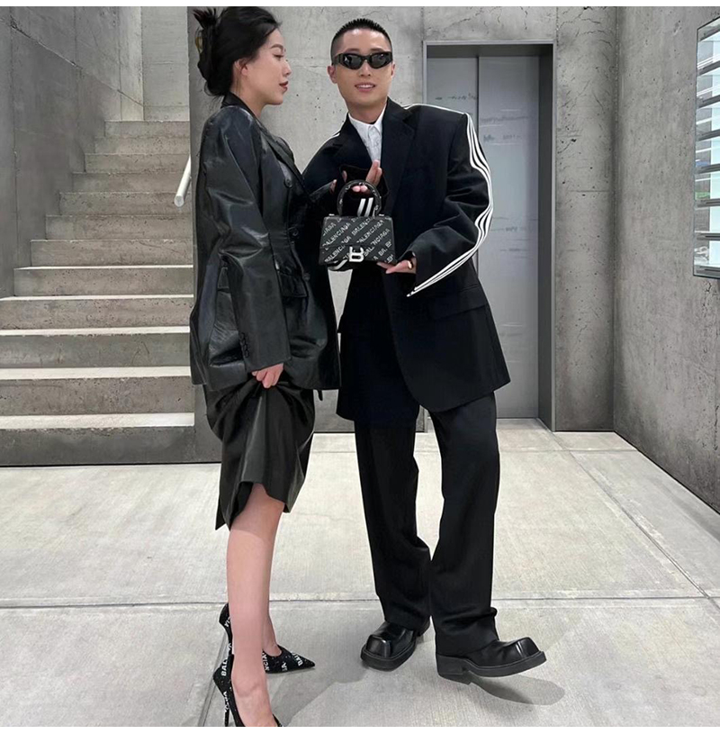BALENCIAGA-719115 발렌시아가 블랙 사선 라인스톤
