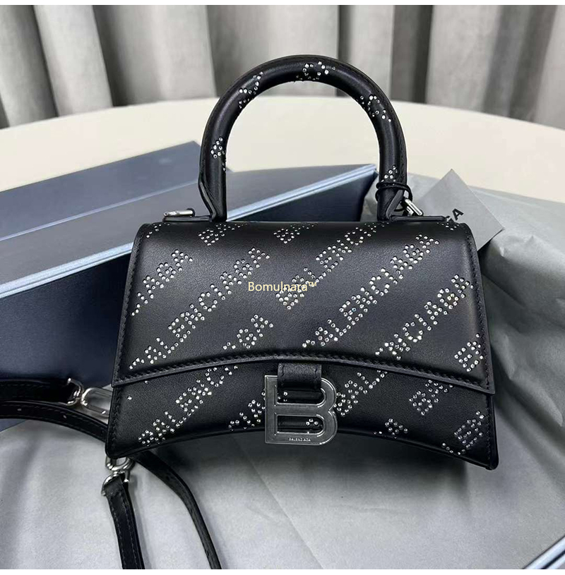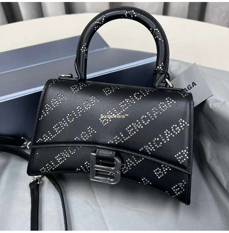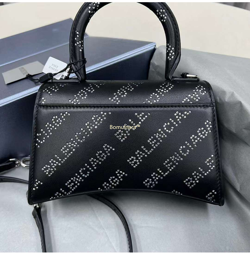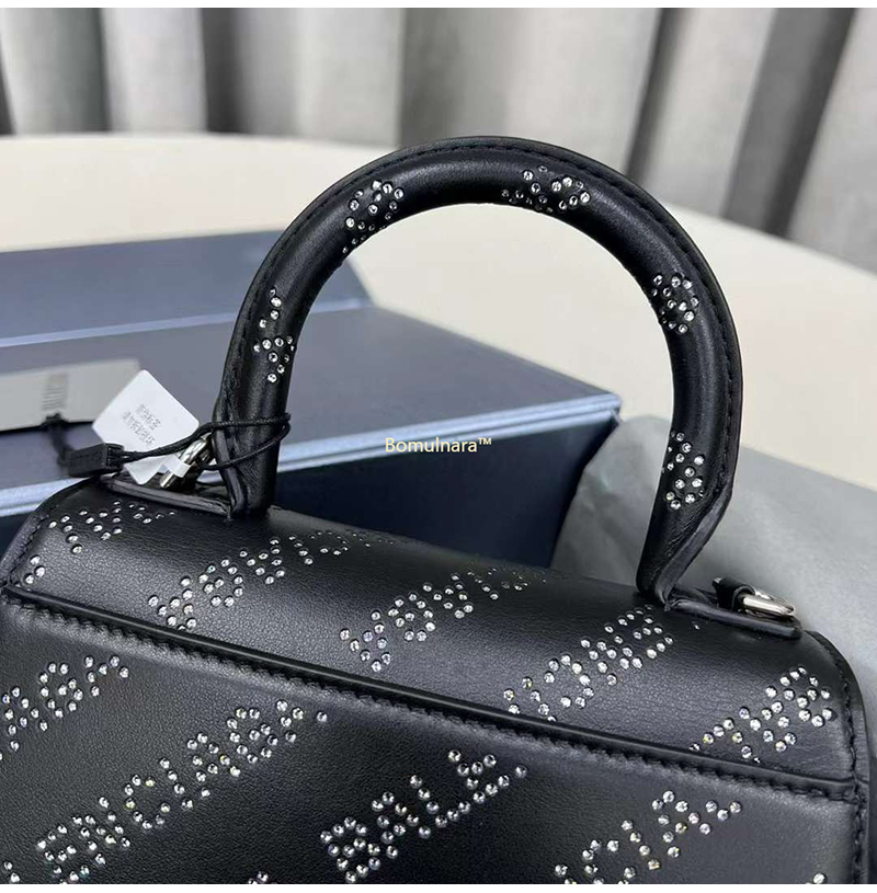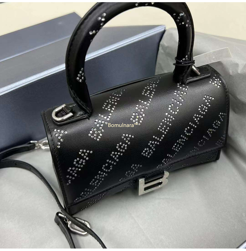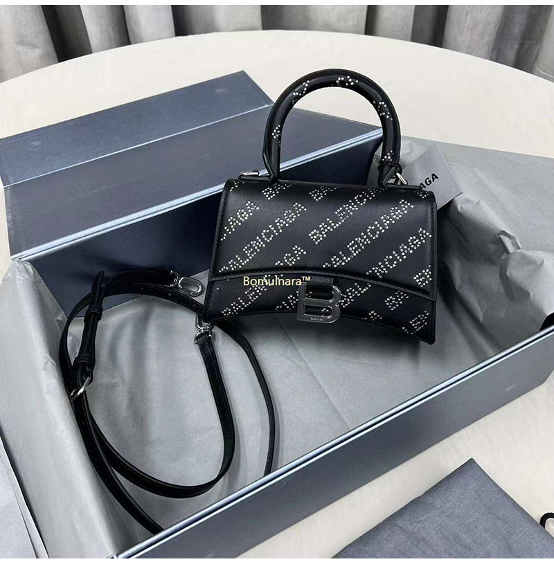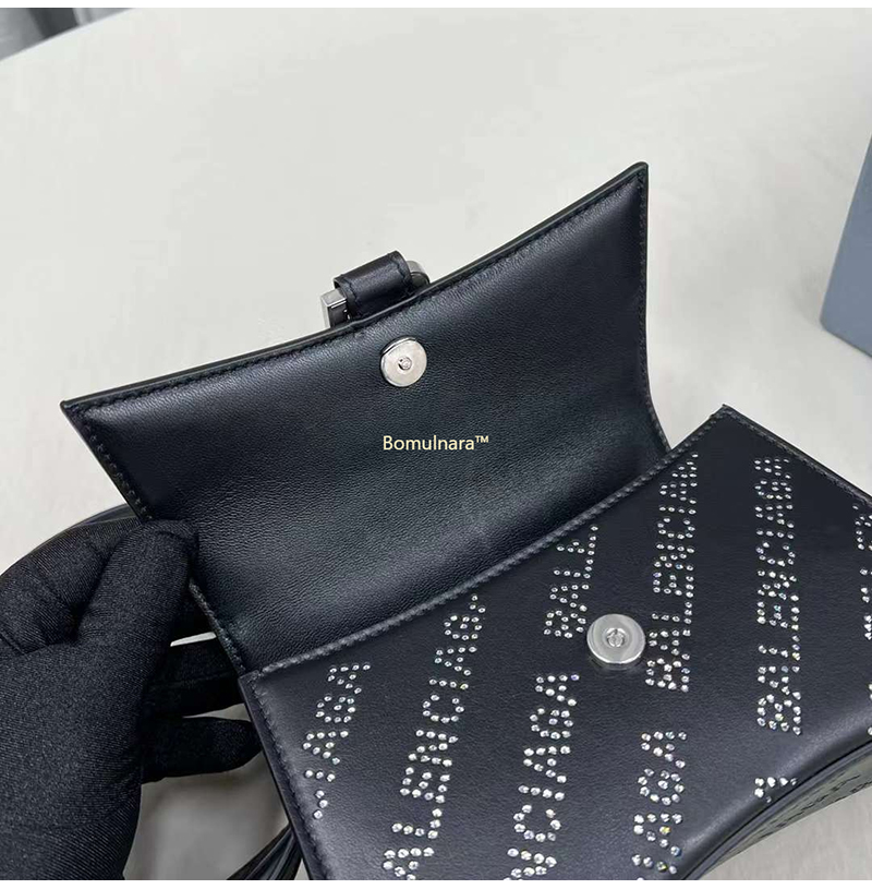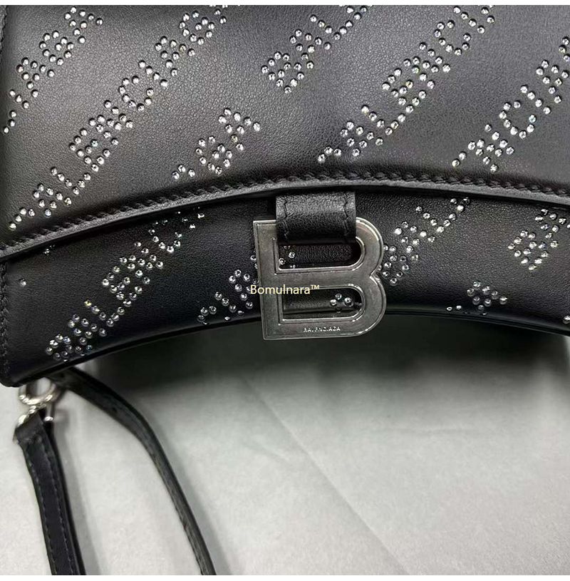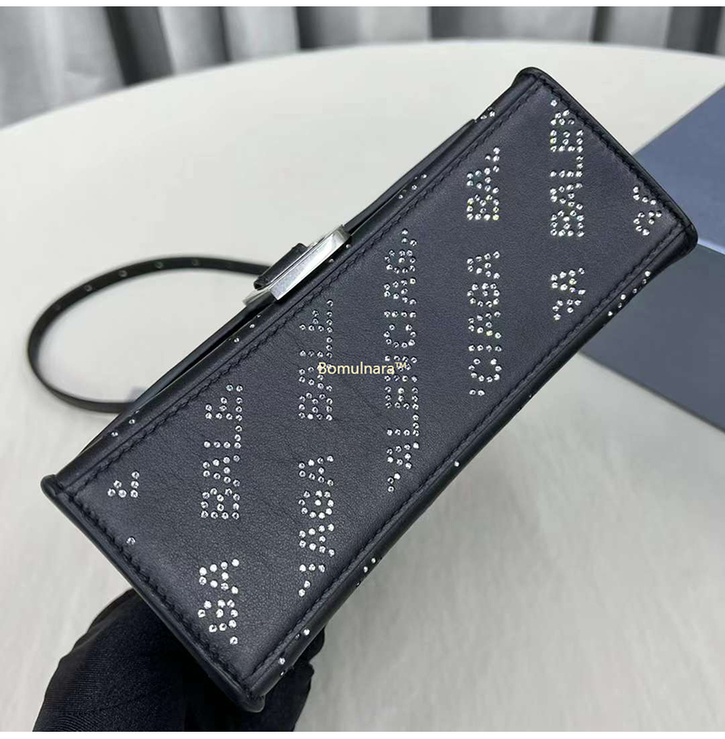 [스페셜오더]BALENCIAGA-719115 발렌시아가 블랙 사선 라인스톤 로고 아워글래스 XS 핸드백
