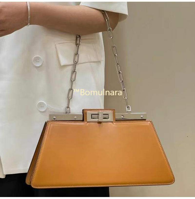 FENDI-8BN340 펜디 브라운 피카부 컷 미디엄 체인