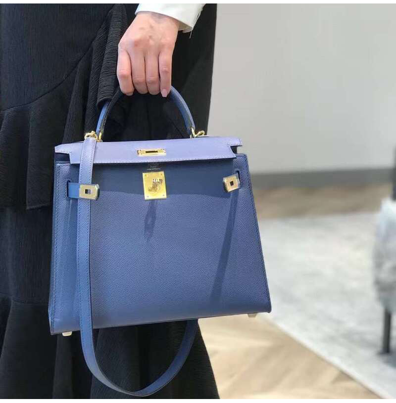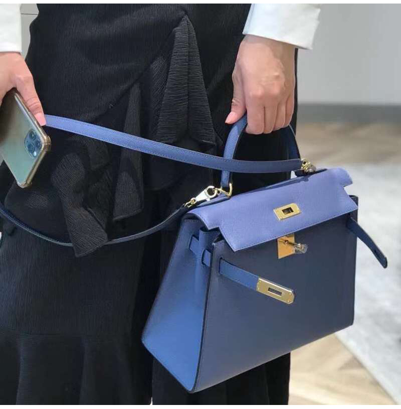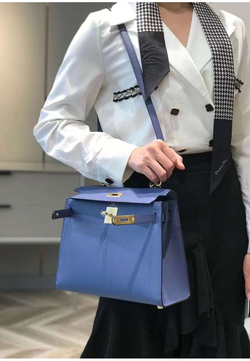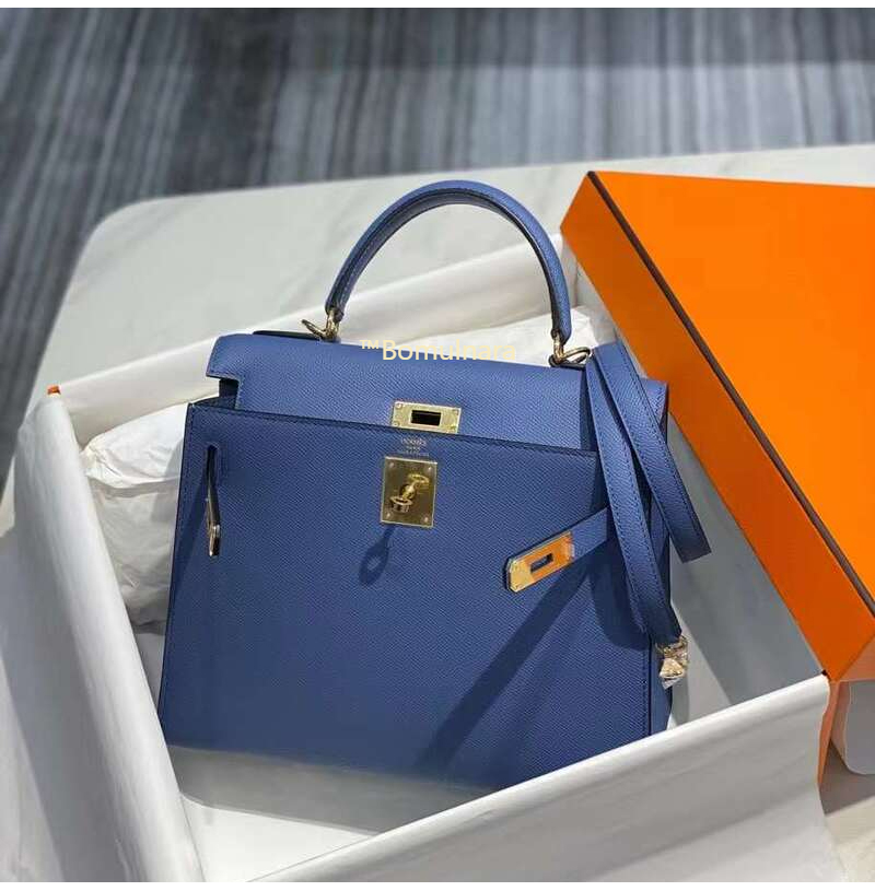 [스페셜오더]HERMES-에르메스 Bleu Electrique 골드 장식 Epsom Kelly 켈리 백 25CM