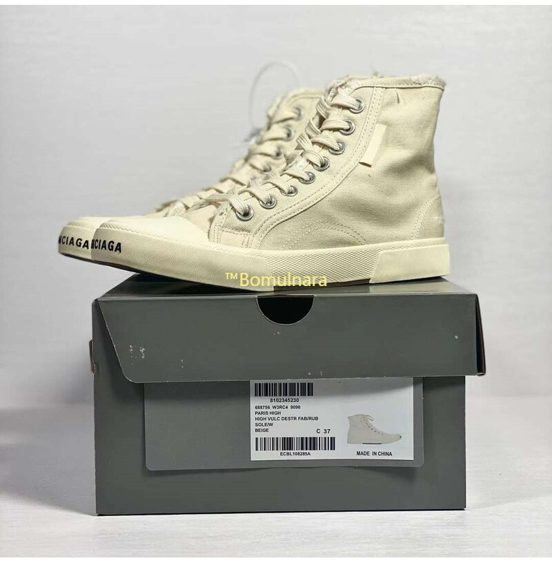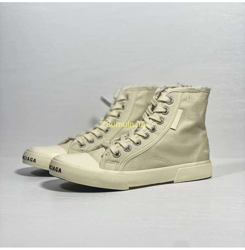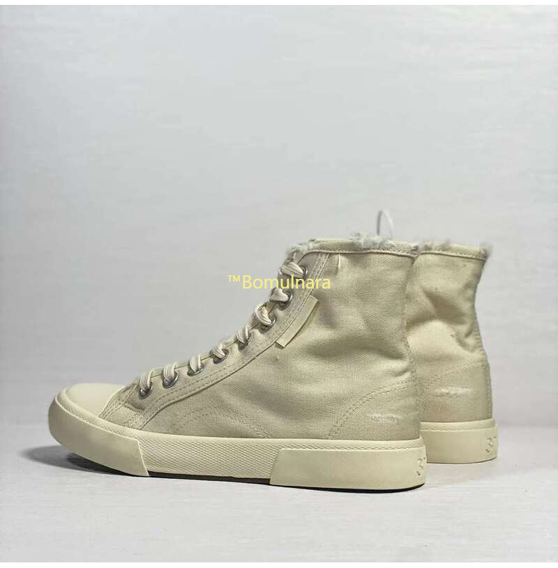 BALENCIAGA-688752 발렌시아가 화이트 디스트로이드 코튼 앤 화이트 러버 Paris High Top 스니커즈