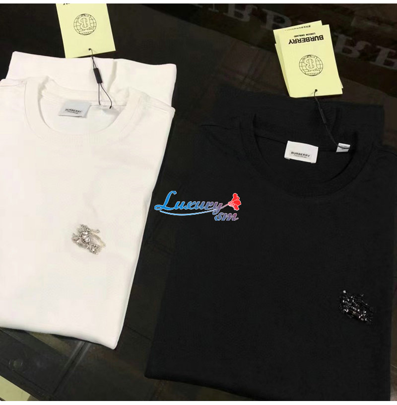BURBERRY-80651391 버버리 블랙 크리스털 EKD 코튼 저지 티셔츠 남성용