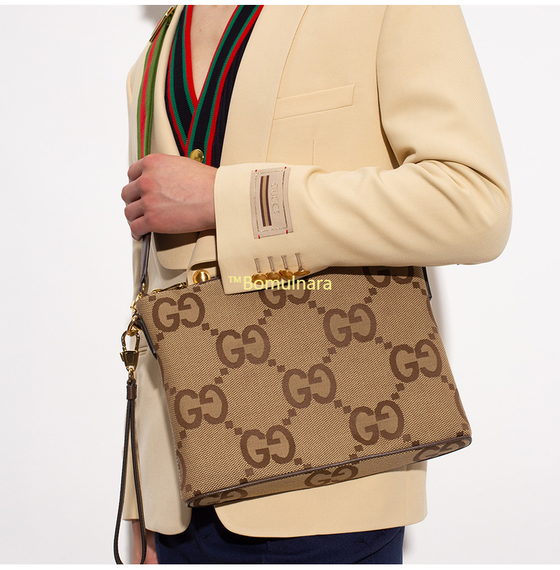 카멜&에보니 점보 GG 캔버스 / 브라운 가죽 트리밍