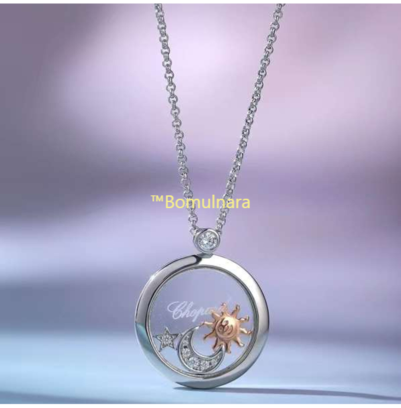 Chopard-쇼파드 화이트 골드,다이아몬드 해피 스포츠 선, 문 & 스타 네크리스