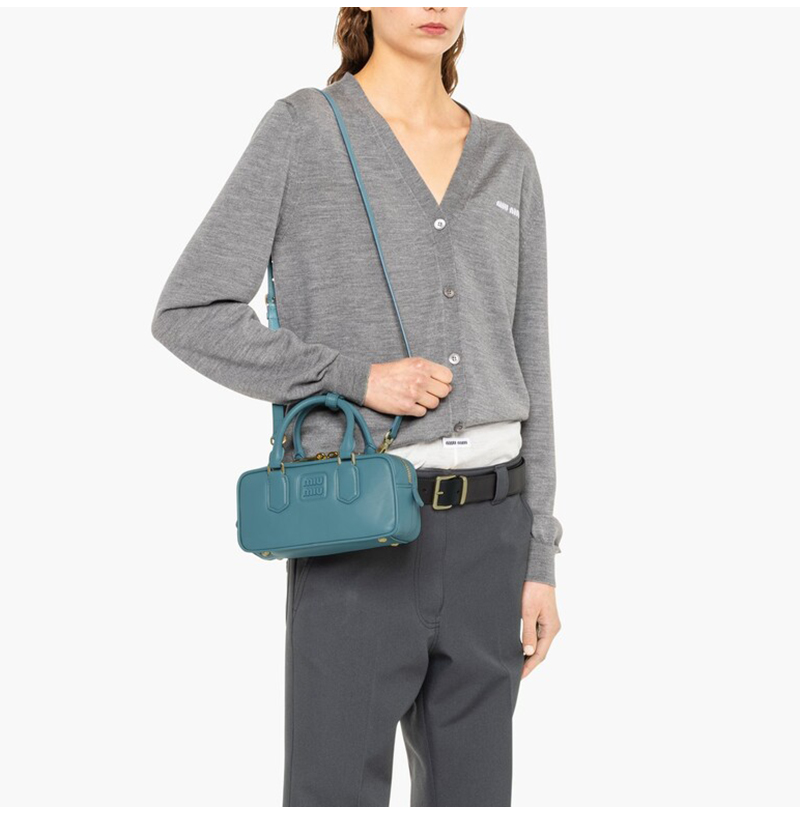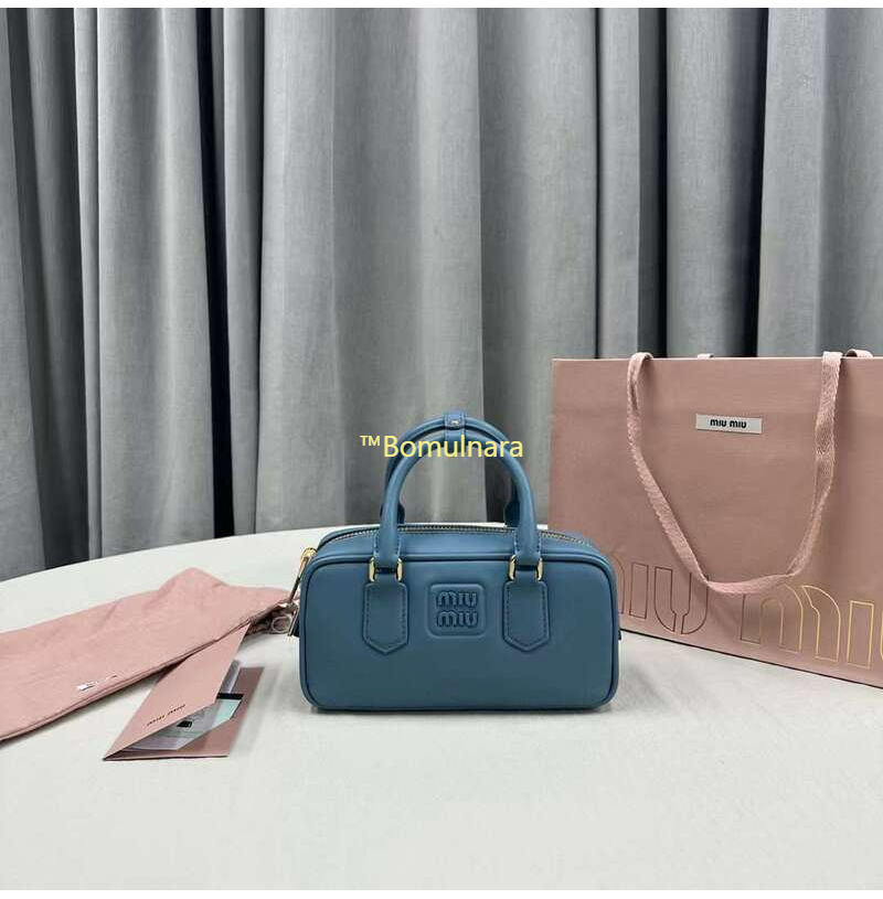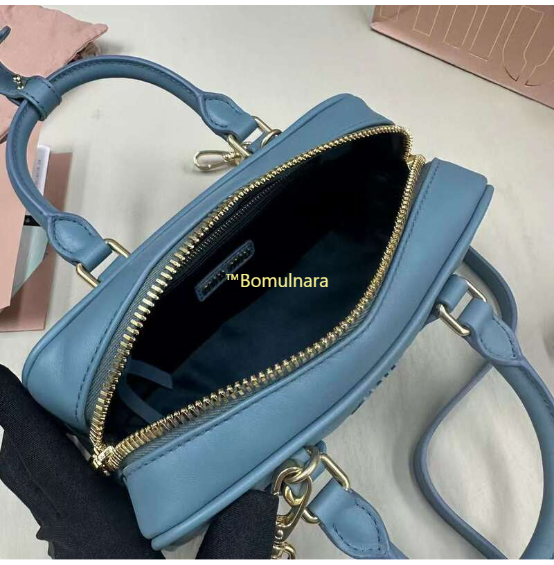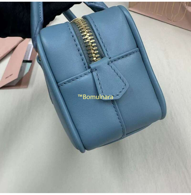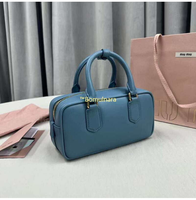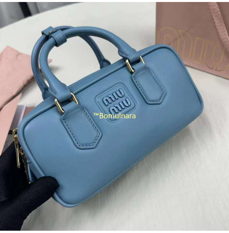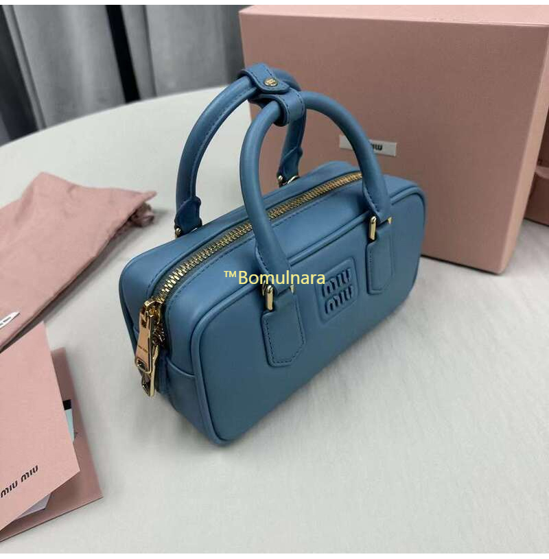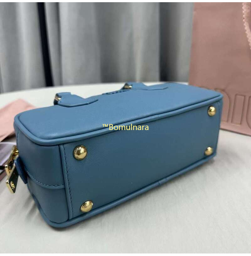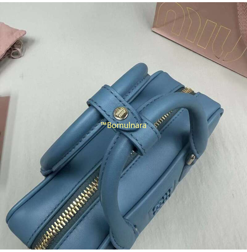 [스페셜오더]MIUMIU-5BB142 미우미우 마리나 블루 레터링 로고 스몰 탑 핸들 백