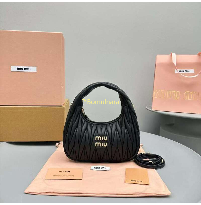 [스페셜오더]MIUMIU-5BC125 미우미우 블랙 완더 마테라쎄 나파 가죽 호보 스몰 숄더백
