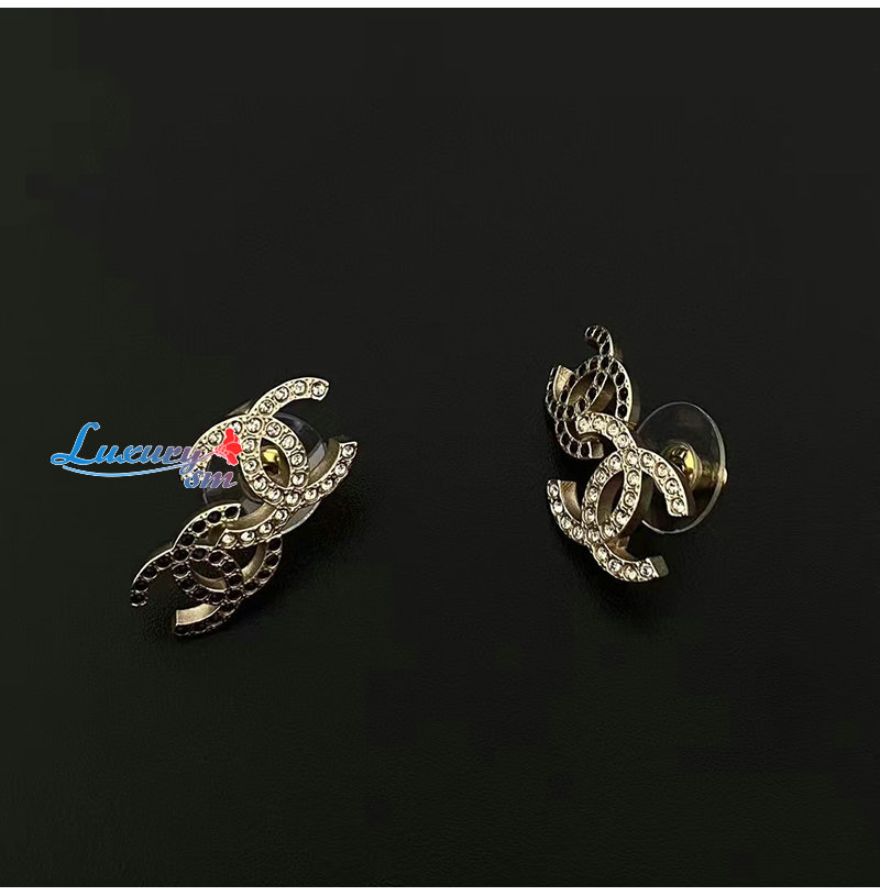 CHANEL-7074 샤넬 골드 크리스탈 장식 CC 로고 귀걸이