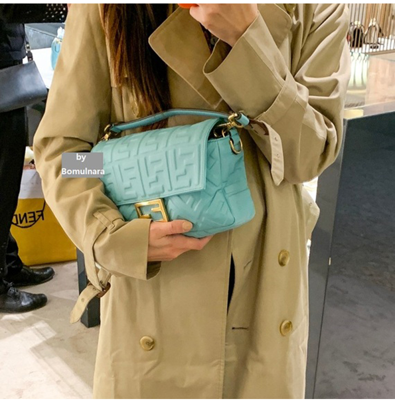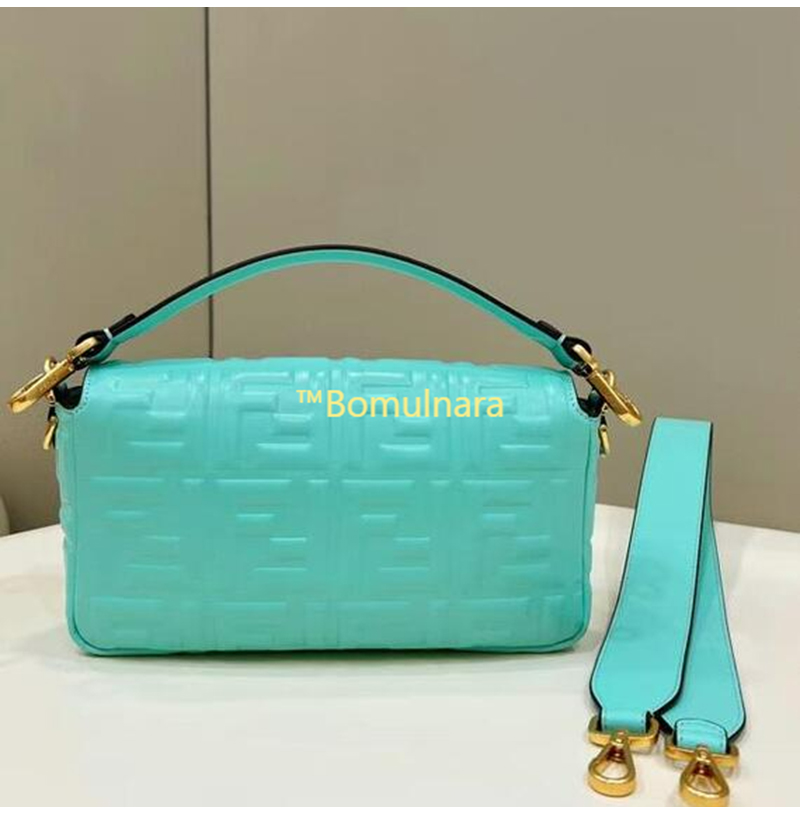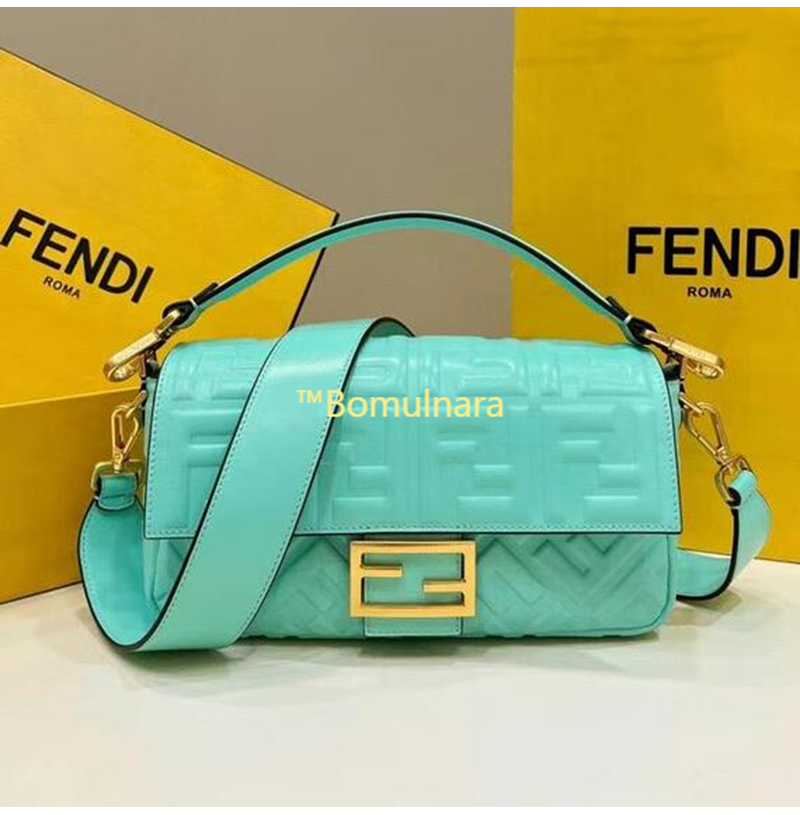 [스페셜오더]FENDI-8BR600 펜디 터쿼이즈 FF 엠보싱 미디엄 바게트 백 27CM