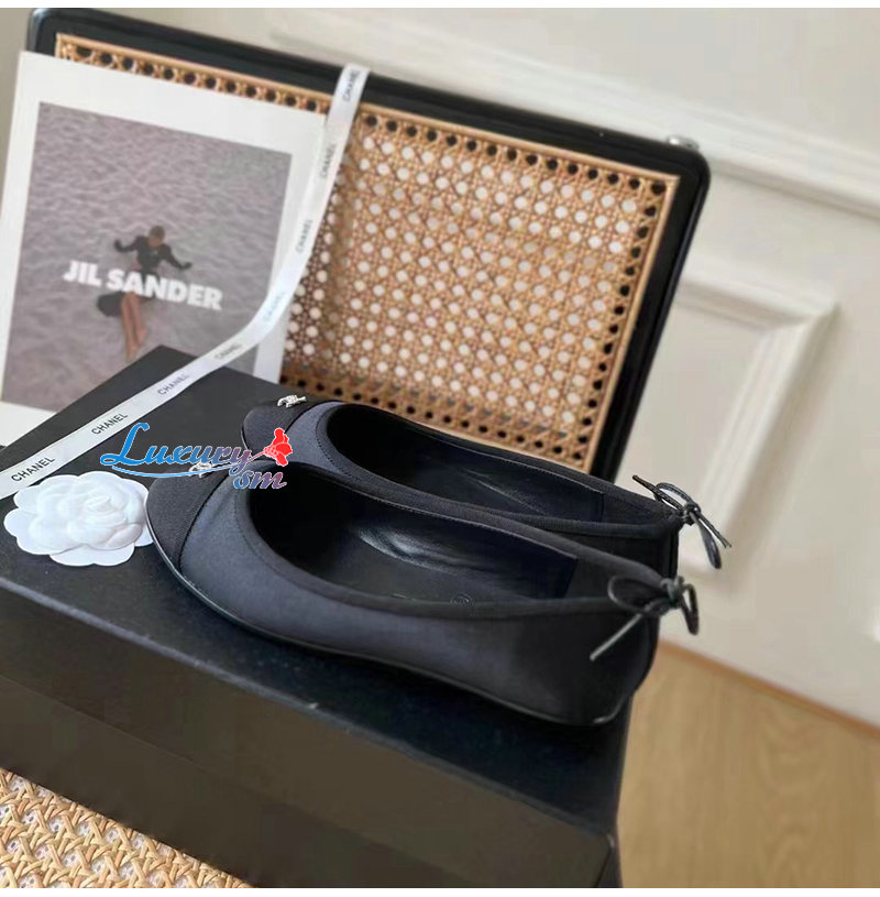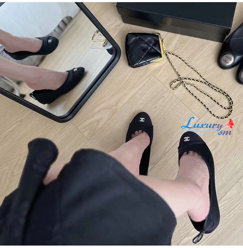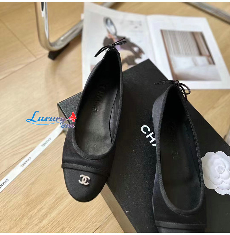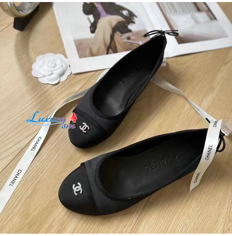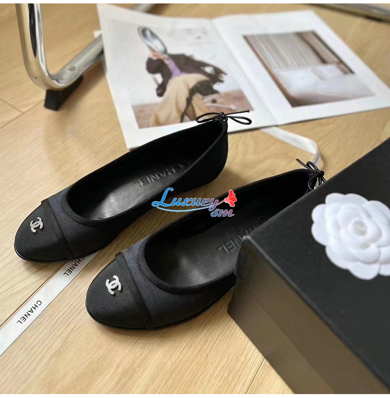 CHANEL-04232 샤넬 블랙 실크 CC 로고 플랫 슈즈