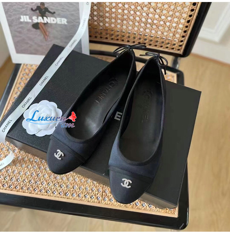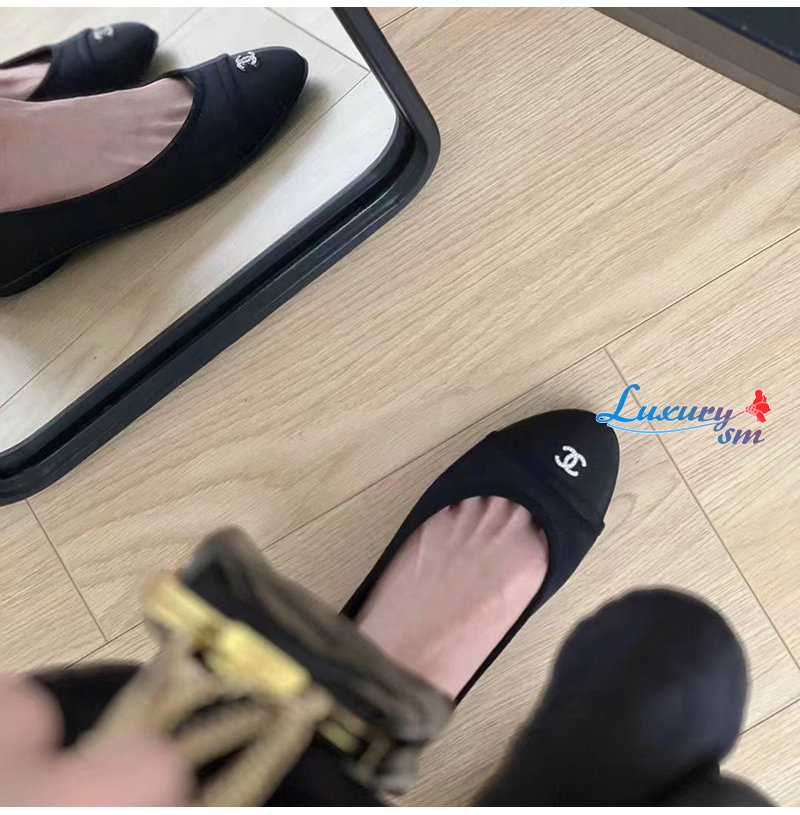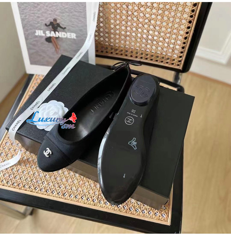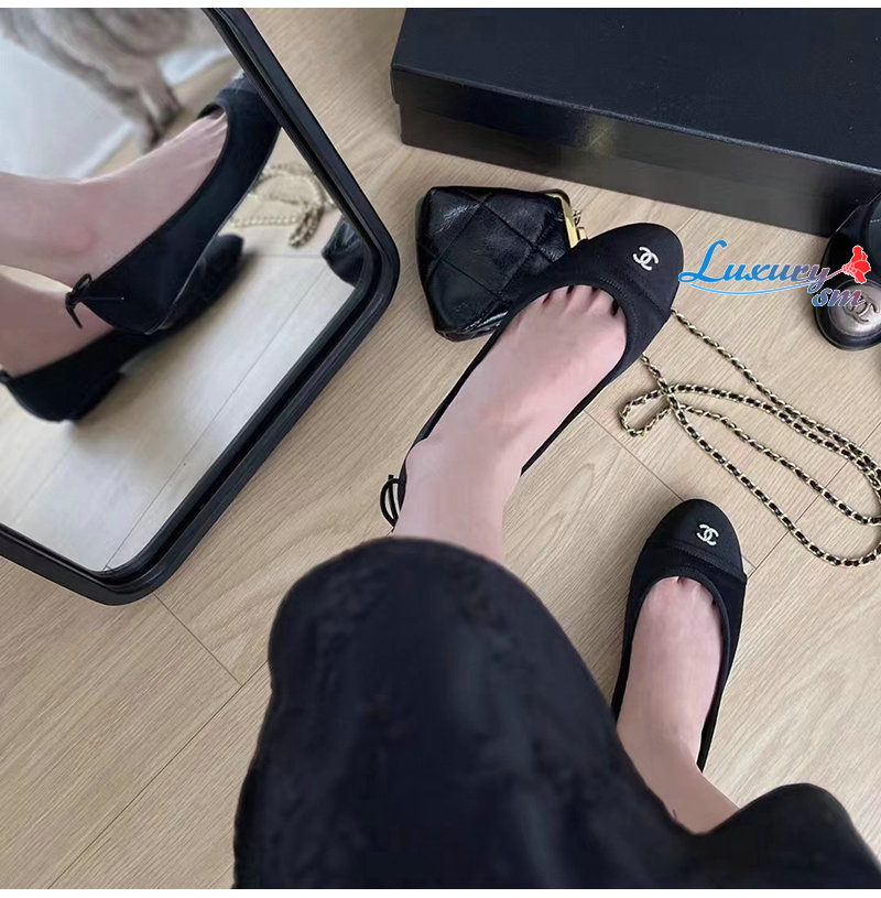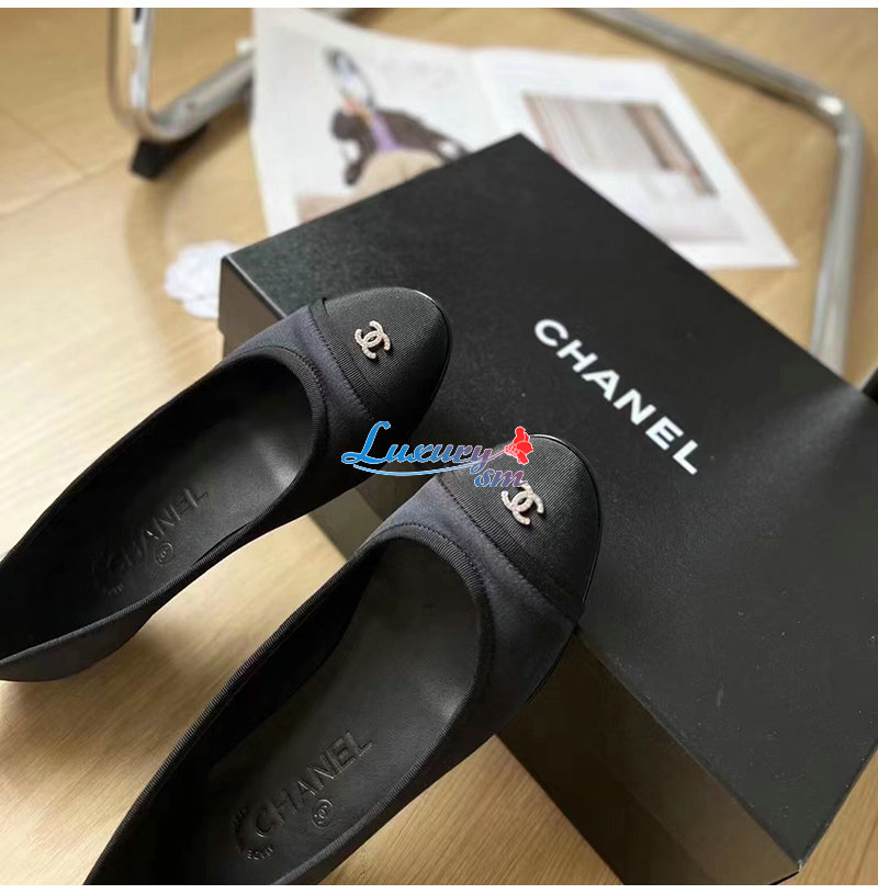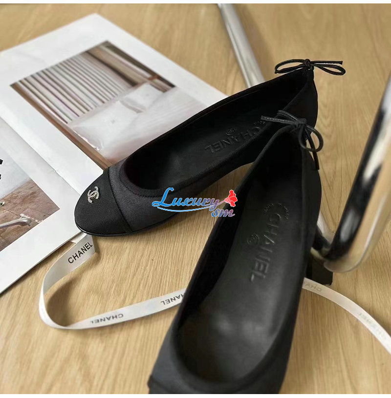 CHANEL-04232 샤넬 블랙 실크 CC 로고 플랫 슈즈