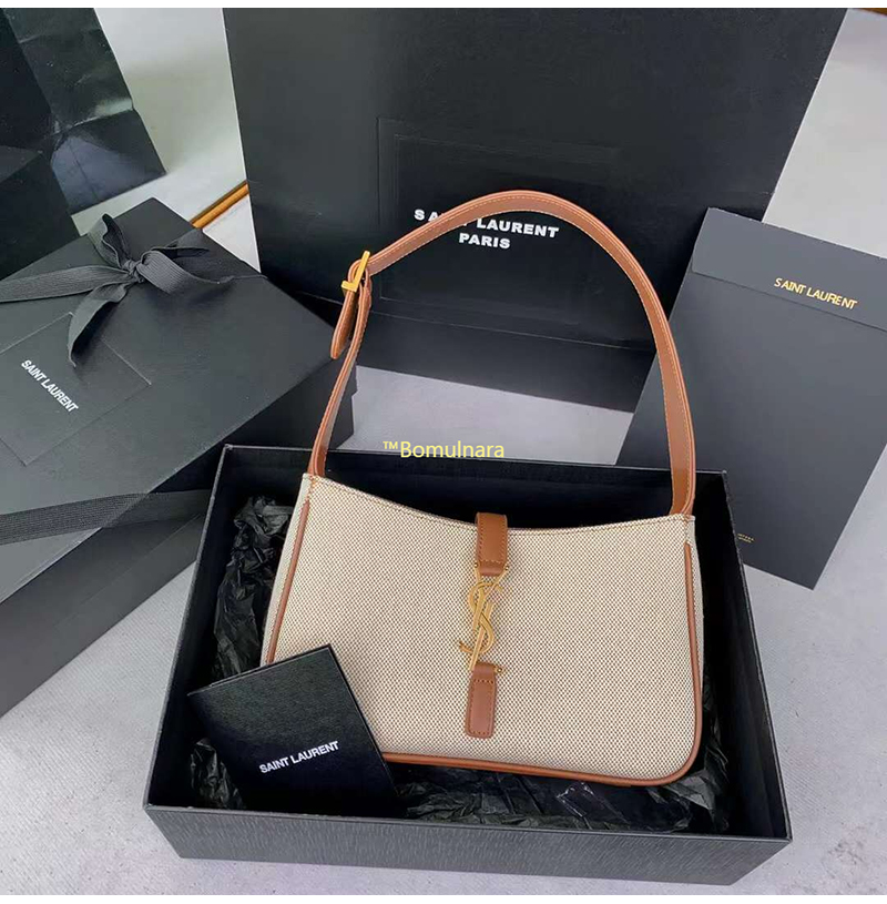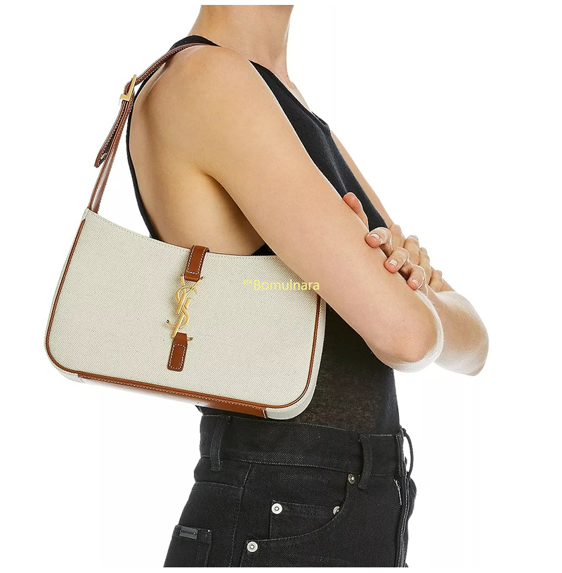 [스페셜오더]SAINT LAURENT-657228 생 로랑 내추럴/브라운 코튼 캔버스 LE 5 7 스몰 호보백