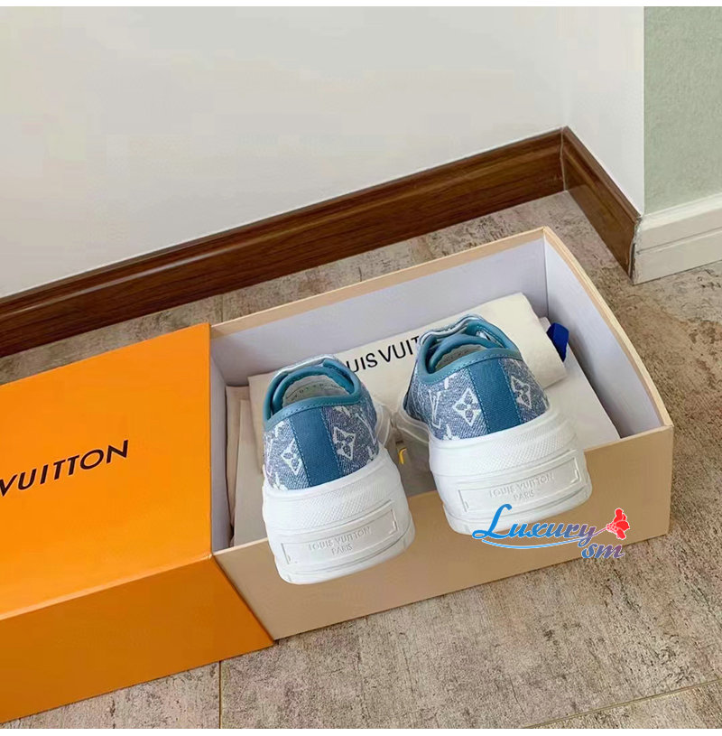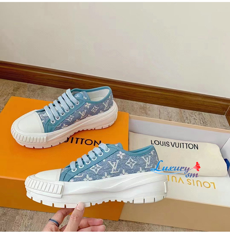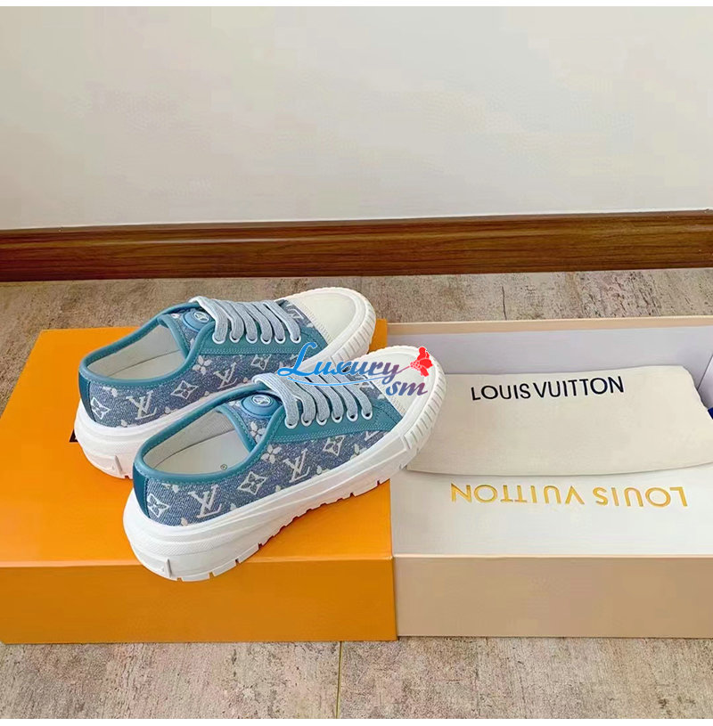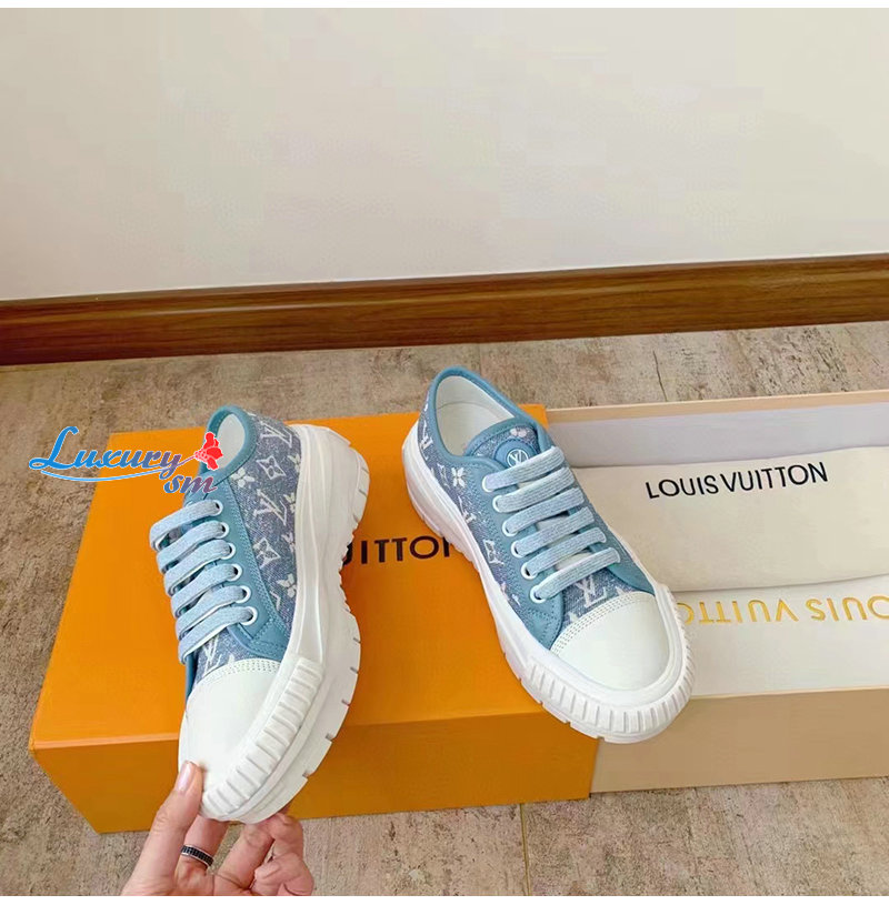 LOUIS VUITTON-1AB19O 루이비통 라이트 블루 모노그램 LV 스쿼드 스니커즈 여성용