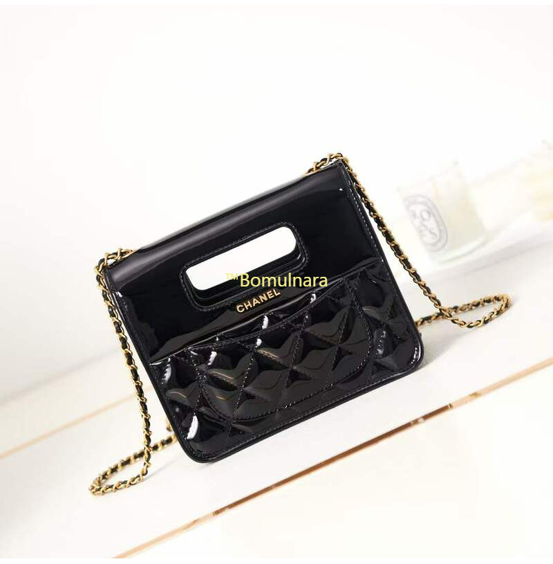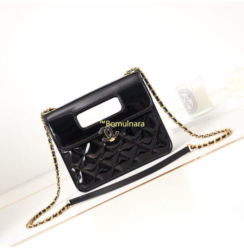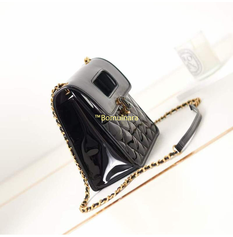 CHANEL-AS4025 샤넬 블랙 페이턴트 탑 핸들