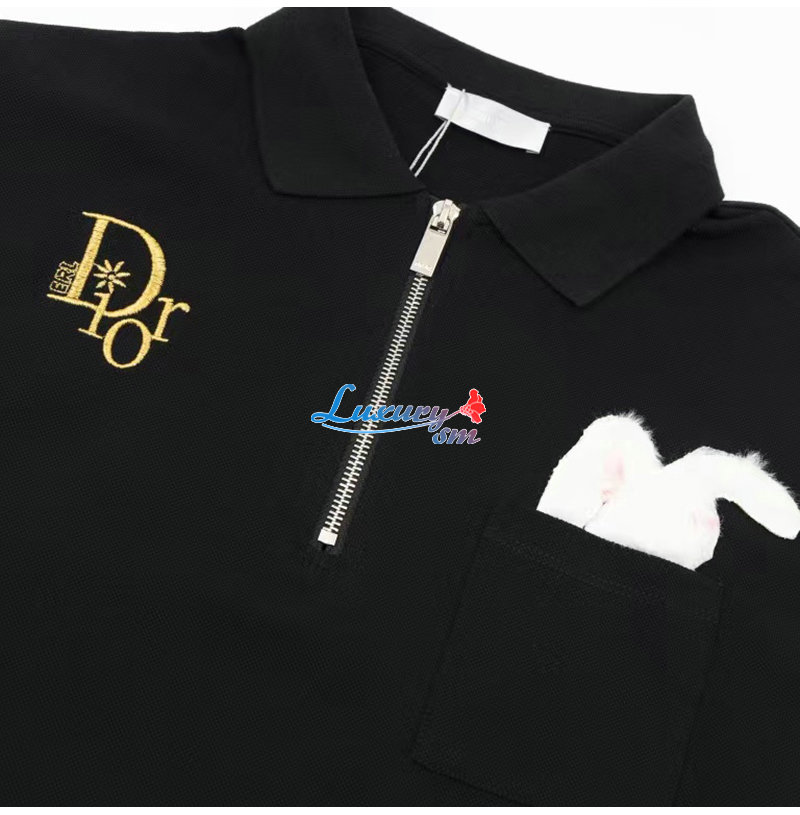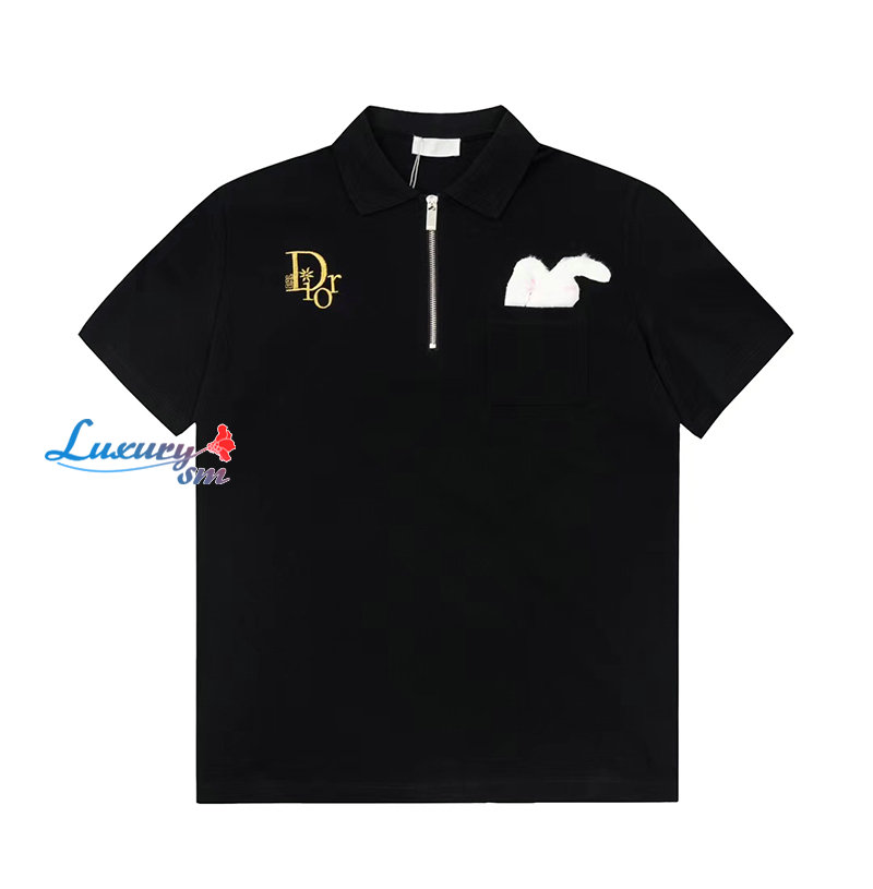 DIOR-05214 디올 블랙 아플리케 장식 폴로 티셔츠 남성용