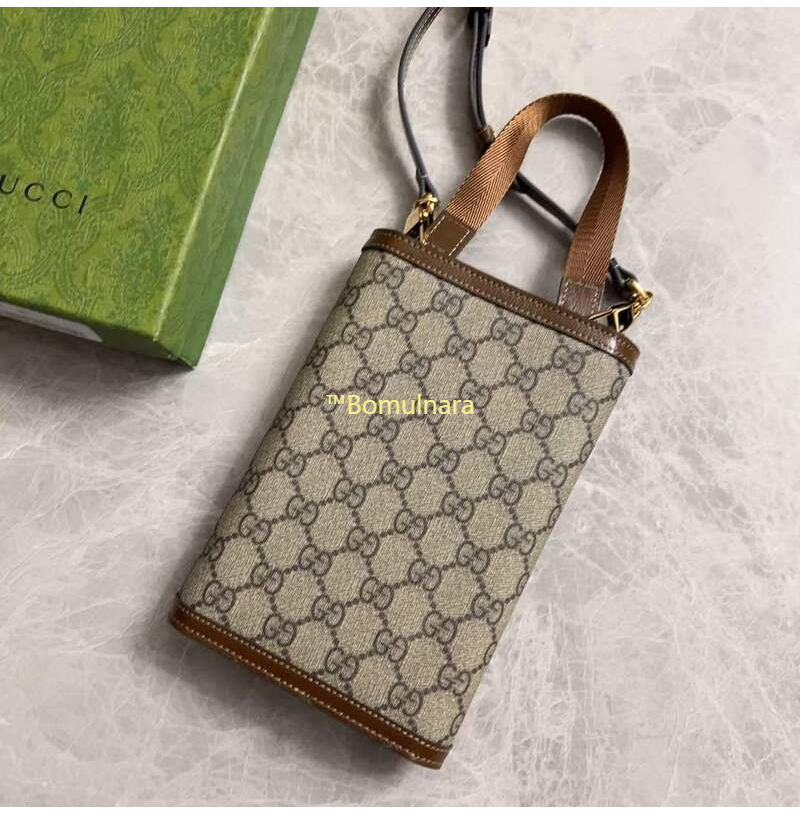 베이지&에보니 GG 수프림 캔버스 / 브라운 가죽 트리밍