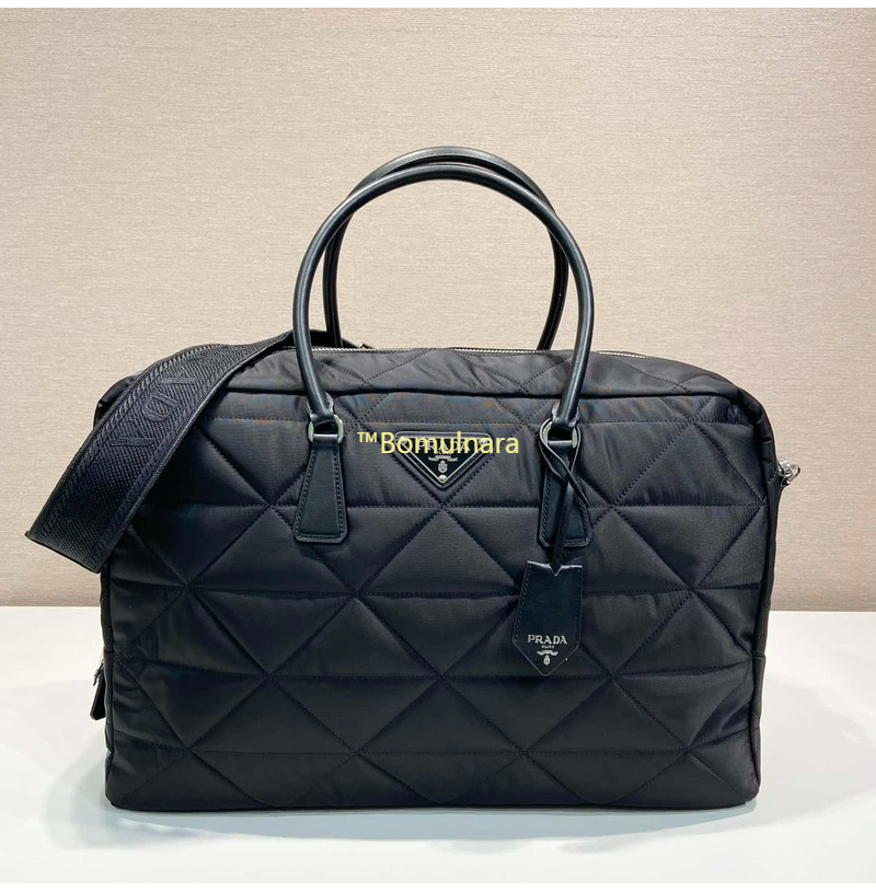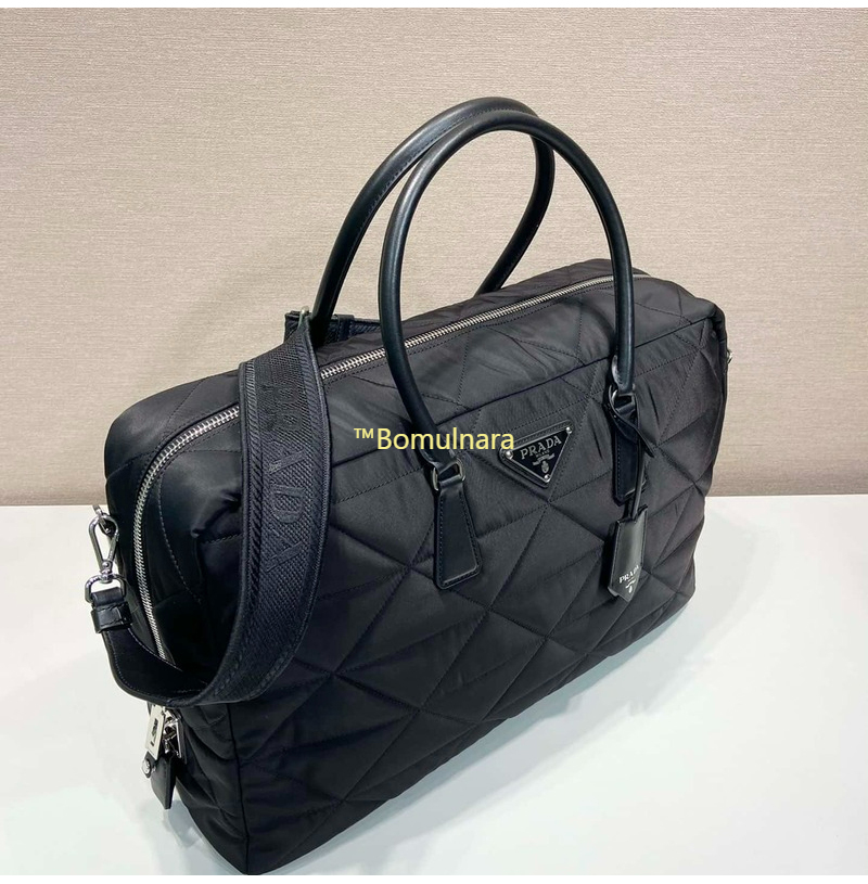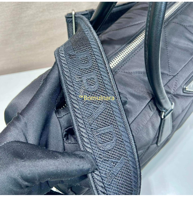 [스페셜오더]PRADA-2VA009 프라다 블랙 리나일론 탑스티치 장식 트래블 백
