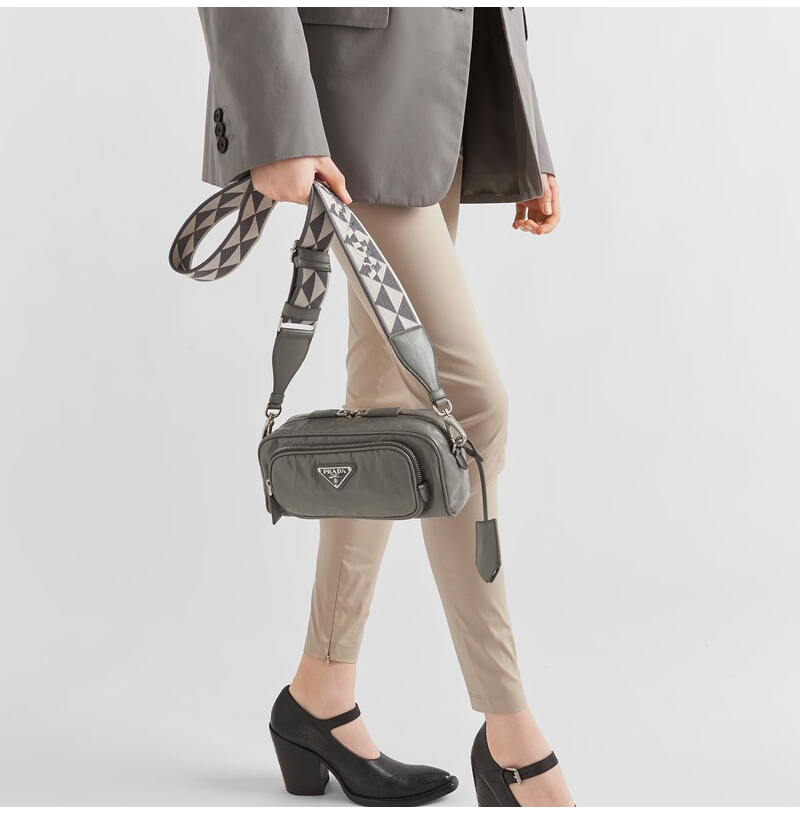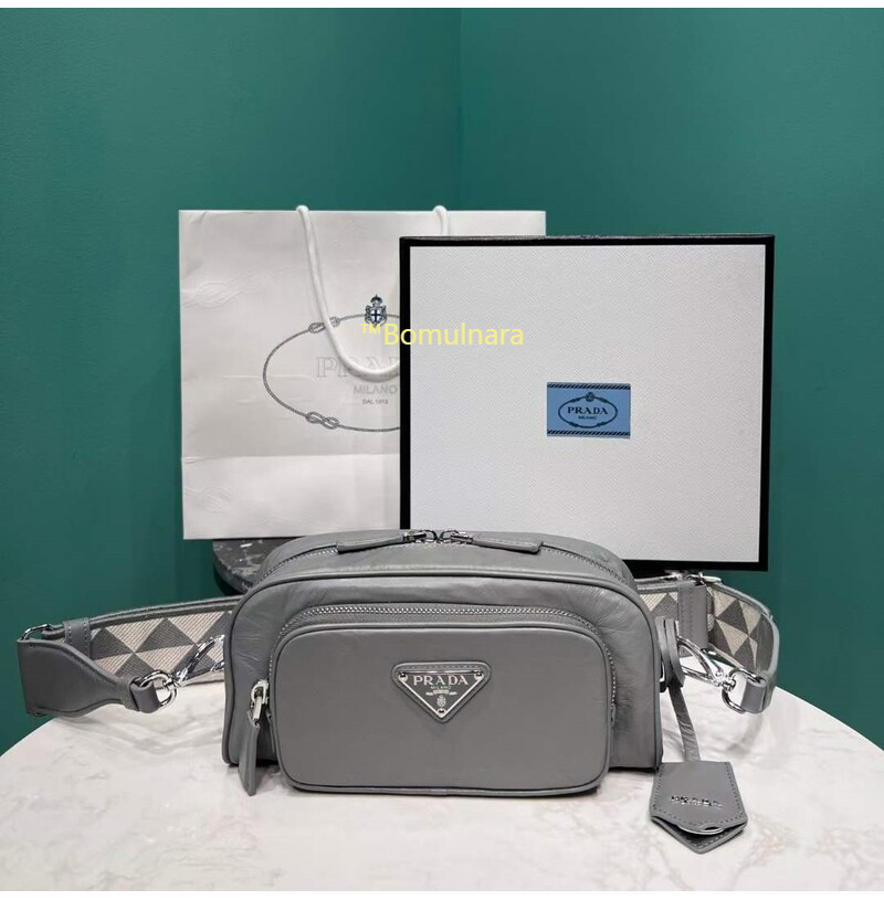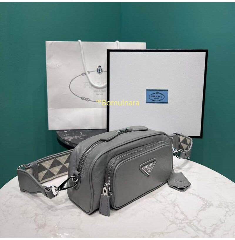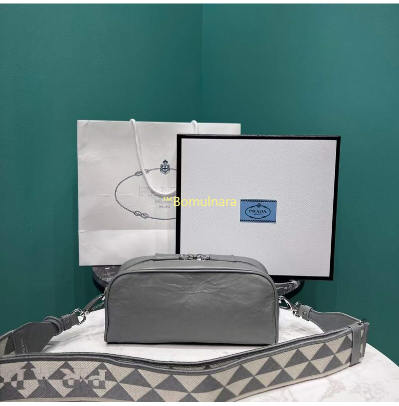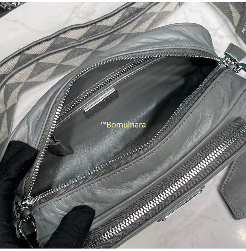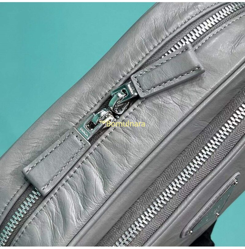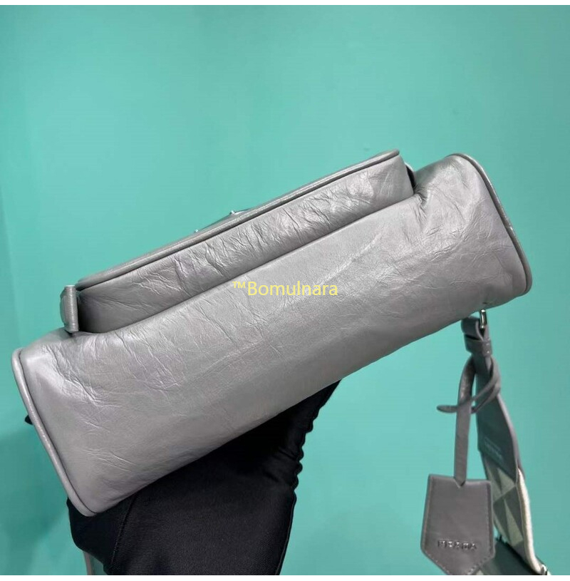 [스페셜오더]PRADA-1BH198 프라다 그레이 앤티크 나파 가죽 멀티포켓 로고 프린트 숄더스트랩 백