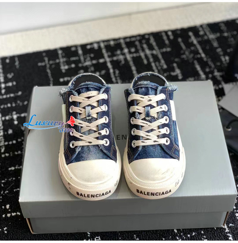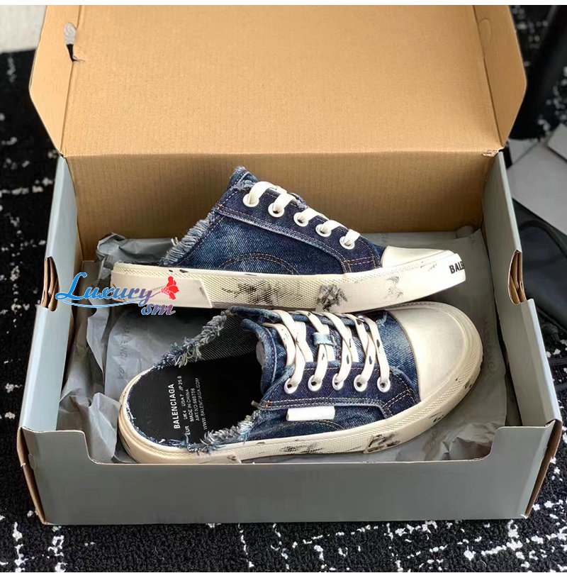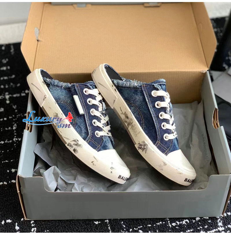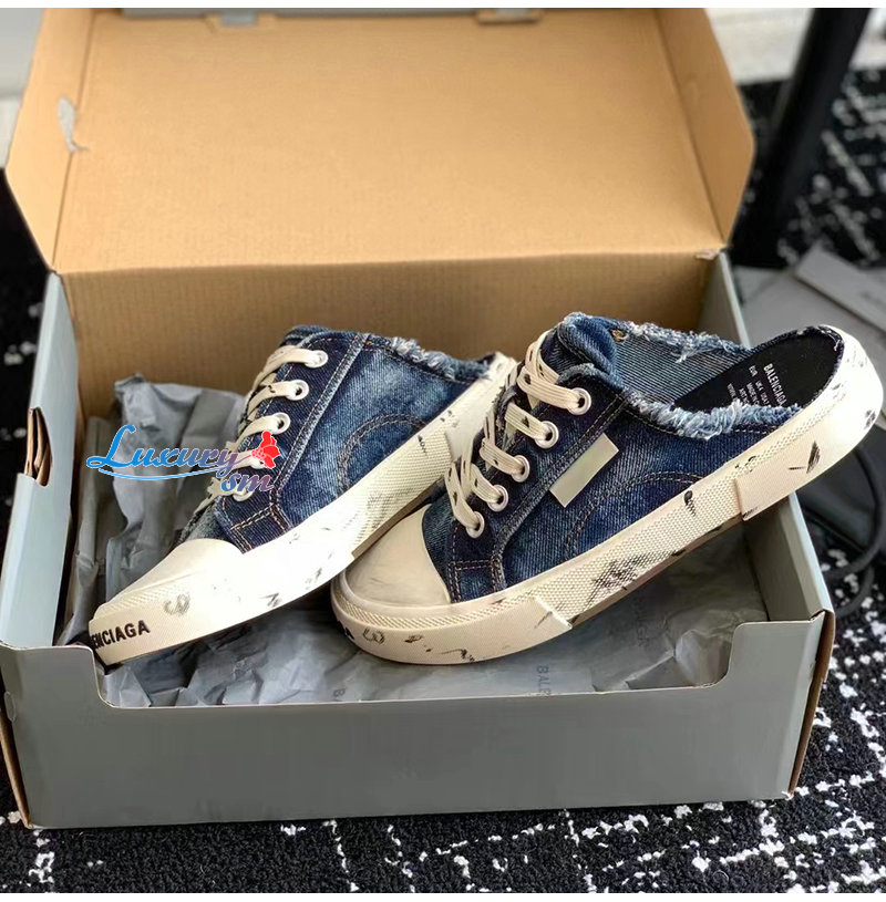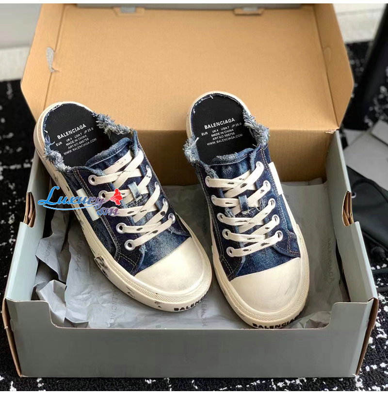 BALENCIAGA-693952 발렌시아가 블루 디스트로이드 데님 PARIS 뮬 남여공용