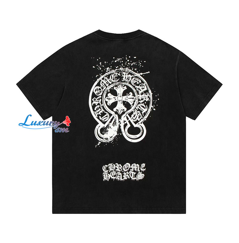 CHROMEHEARTS-05283 크롬하츠 블랙 프린트 장식 티셔츠 남여공용