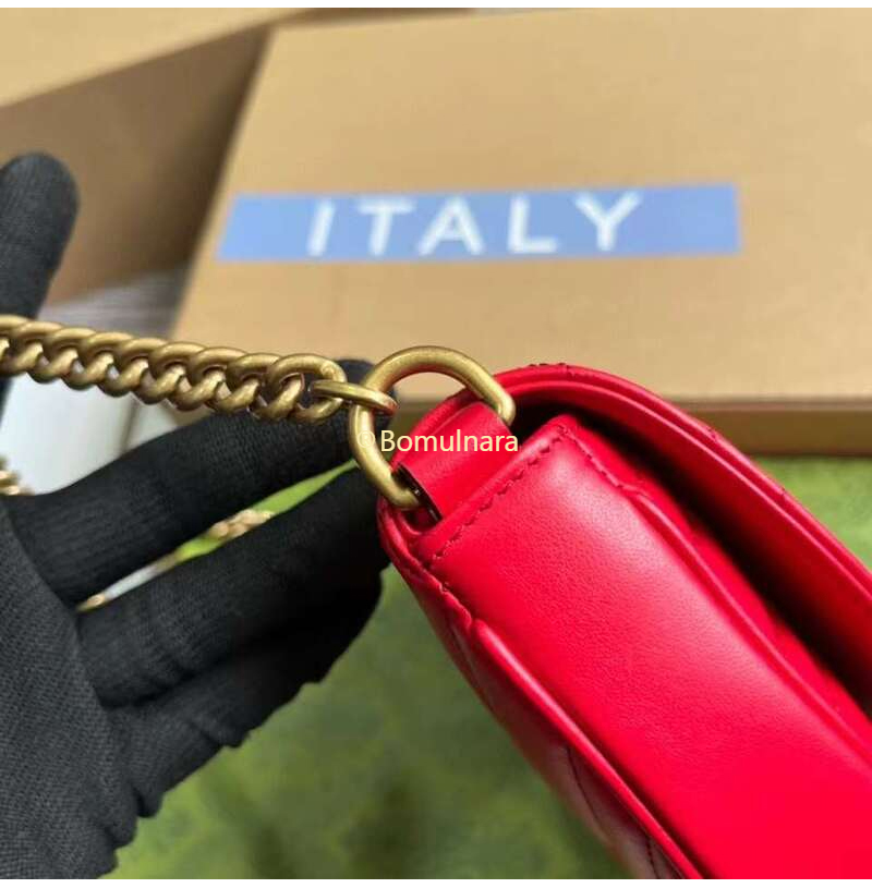 [스페셜오더]GUCCI-746431 6832 구찌 레드 GG 마몽 마틀라세 하프문 체인 미니백