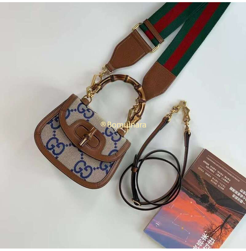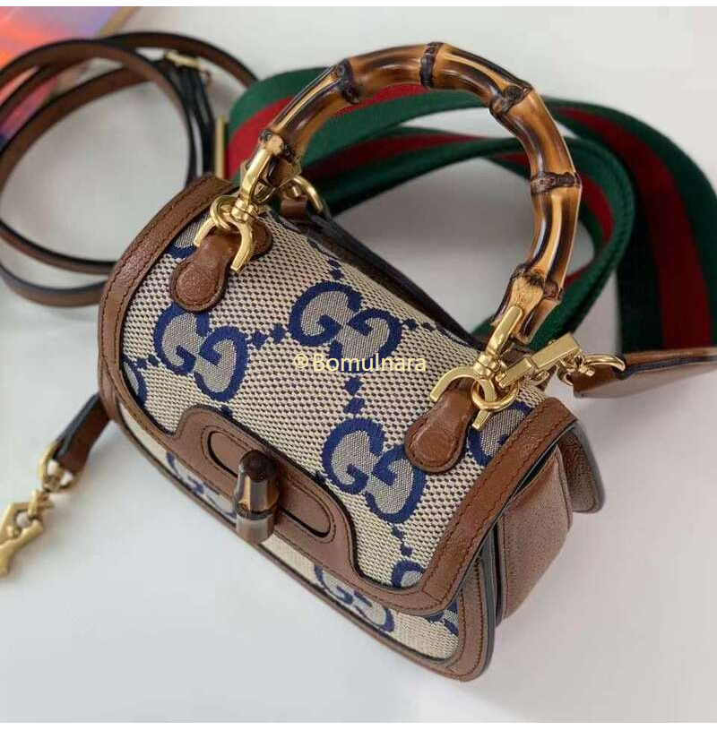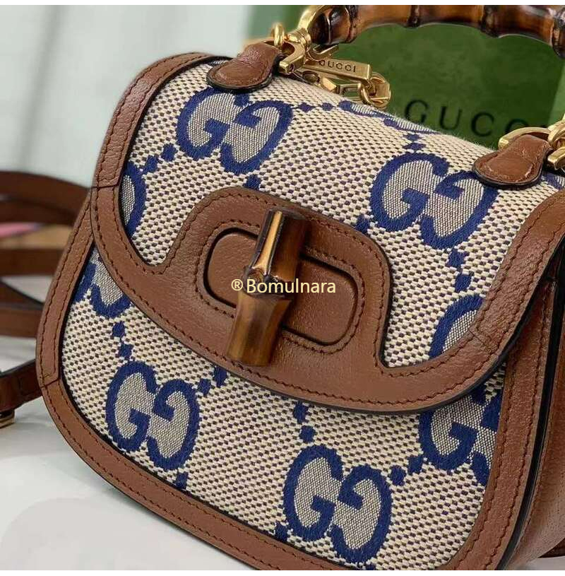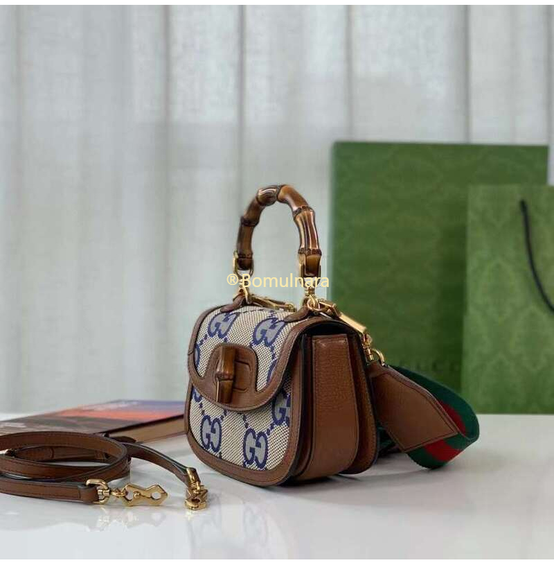 [스페셜오더]GUCCI-675797 2568 구찌 블루/베이지 맥시 GG 뱀부 1947 코리아 익스클루시브 스몰 핸드백