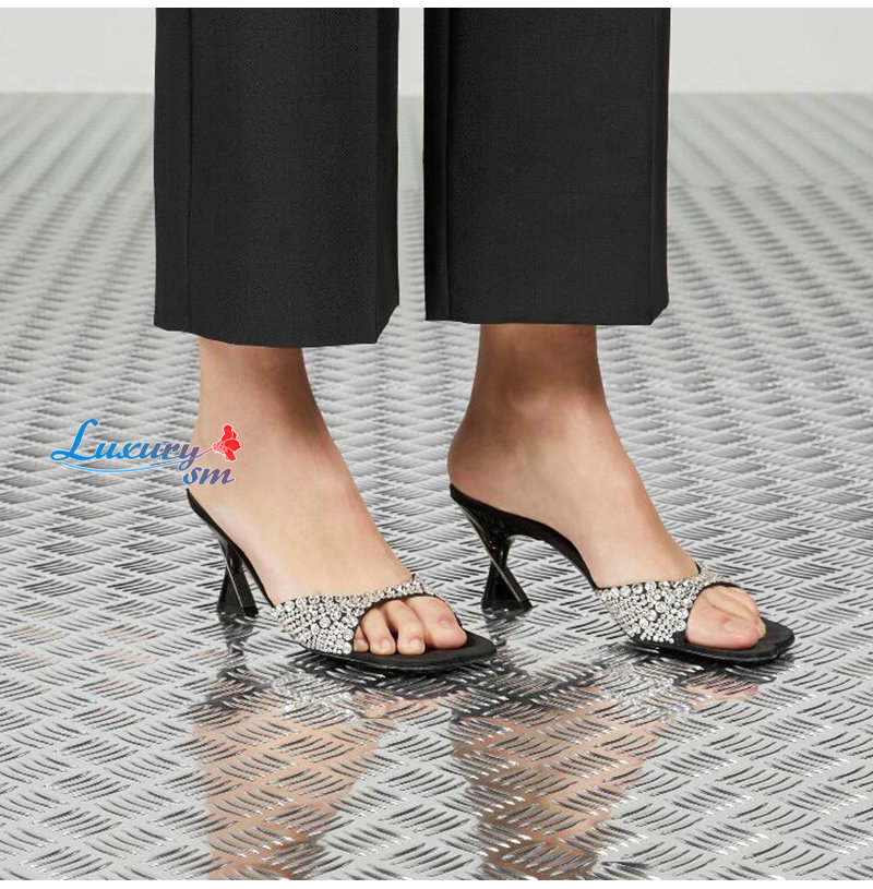 크리스털 장식을 더한 실크 사틴 소재 슬라이드