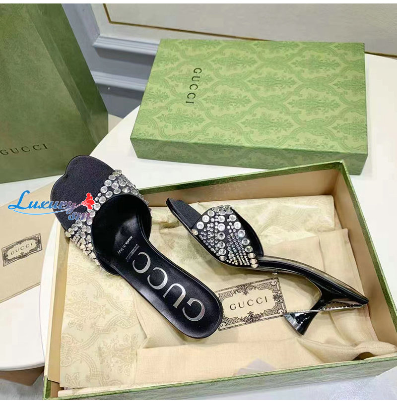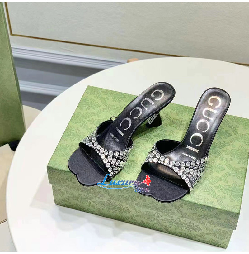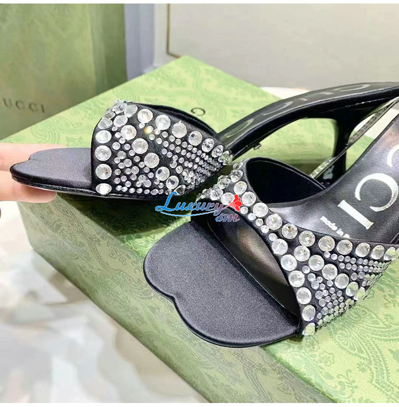 GUCCI-749663 1000 구찌 블랙 크리스털 슬라이드 샌들