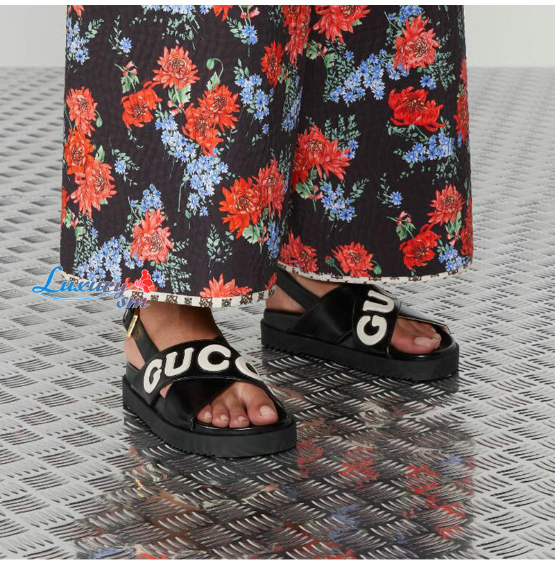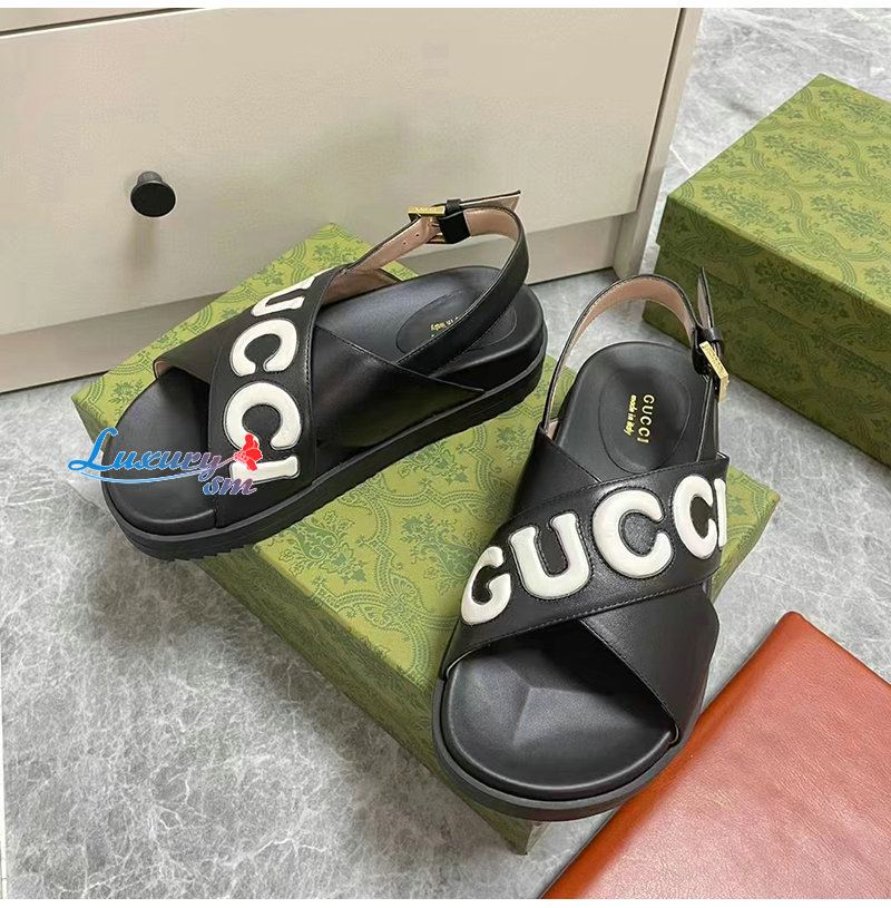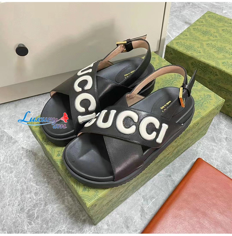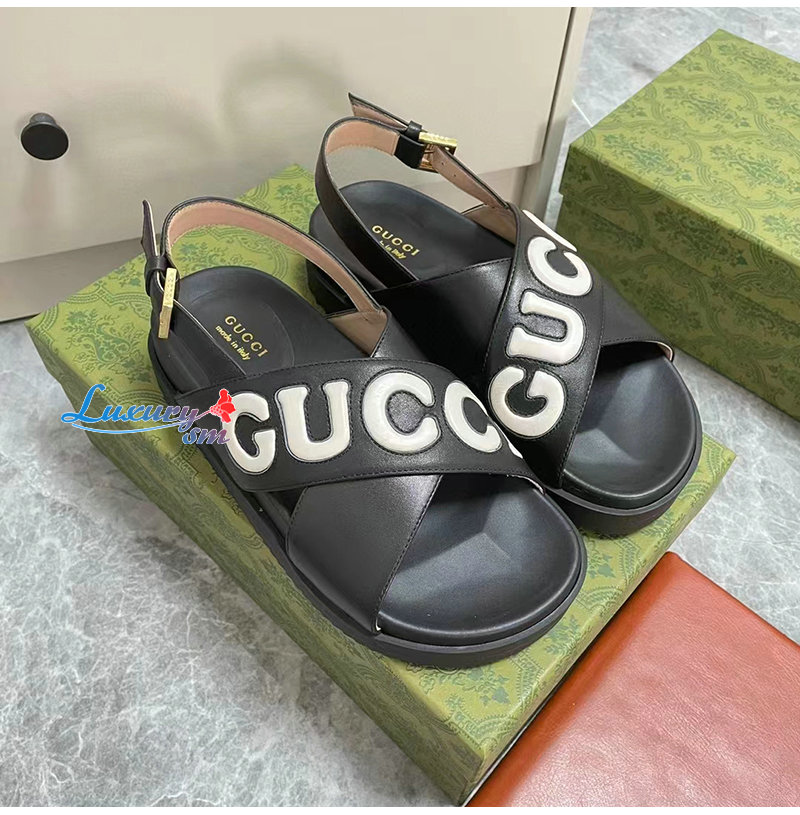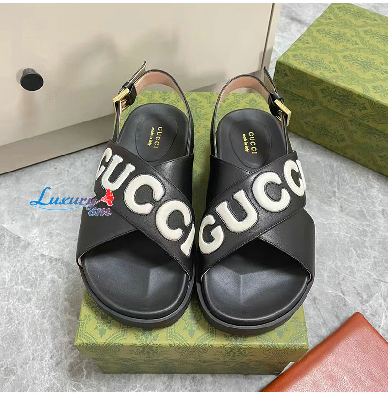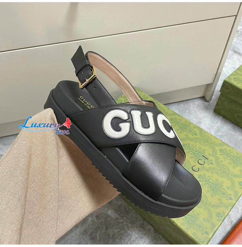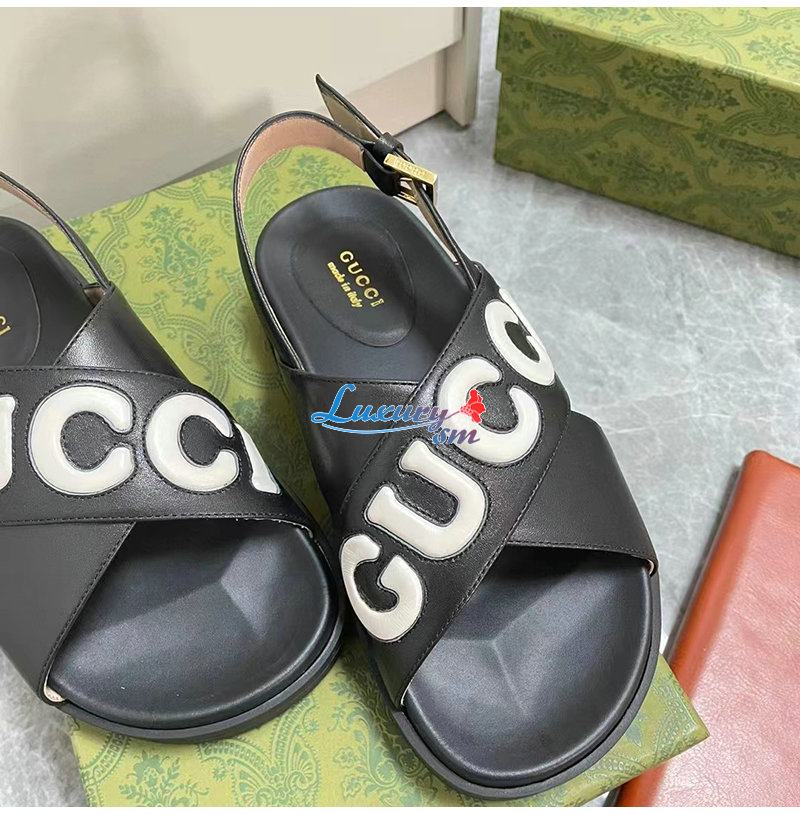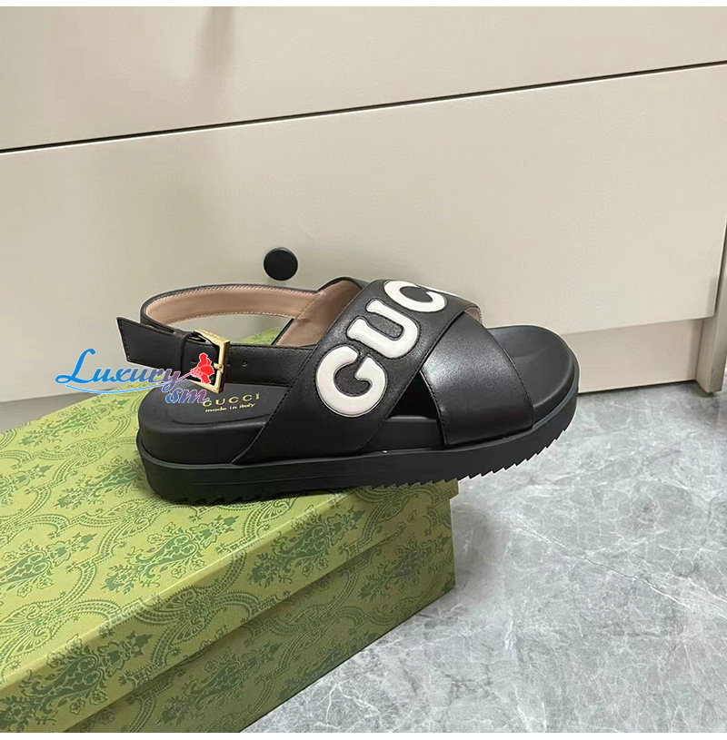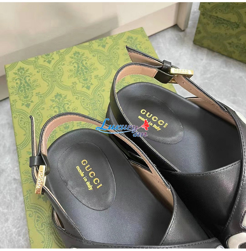 GUCCI-738691 1363 구찌 블랙 가죽 샌들 여성용