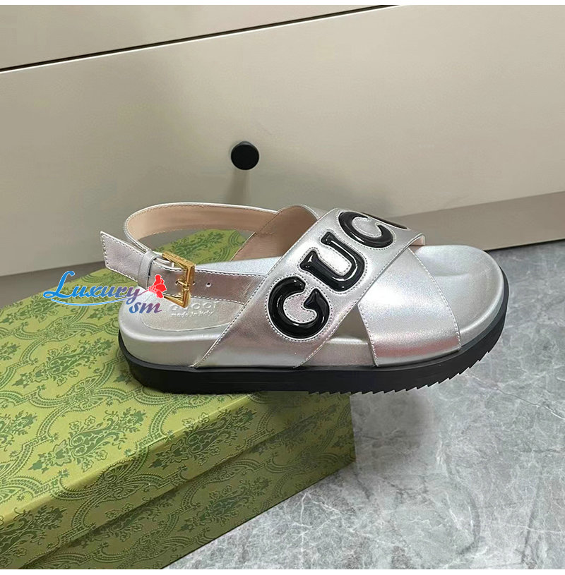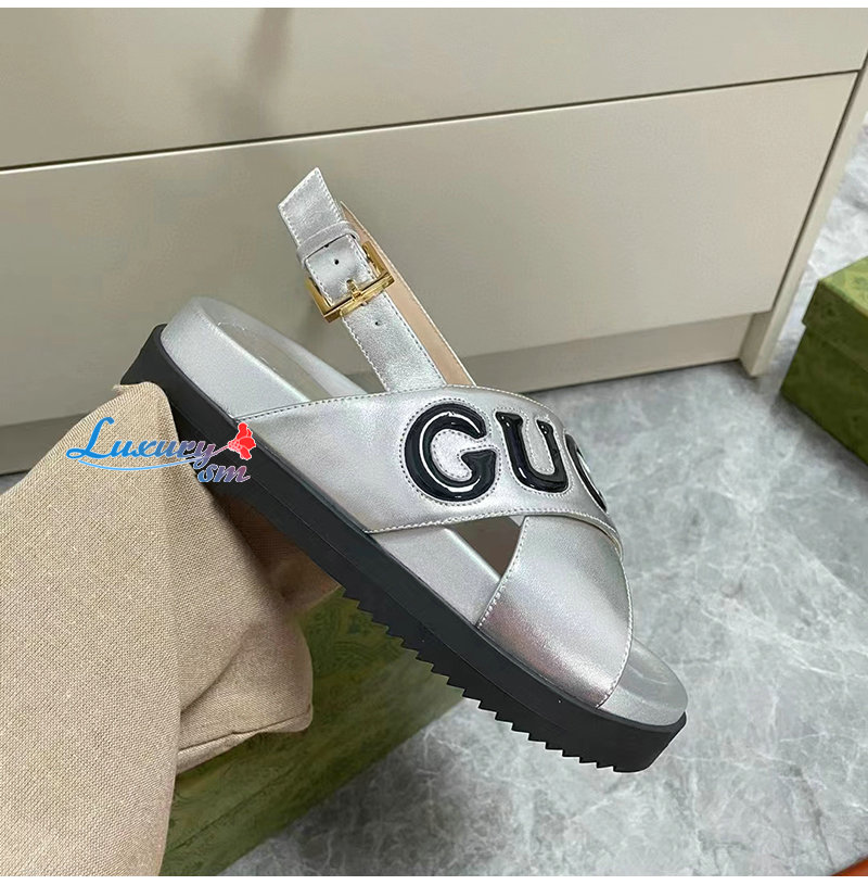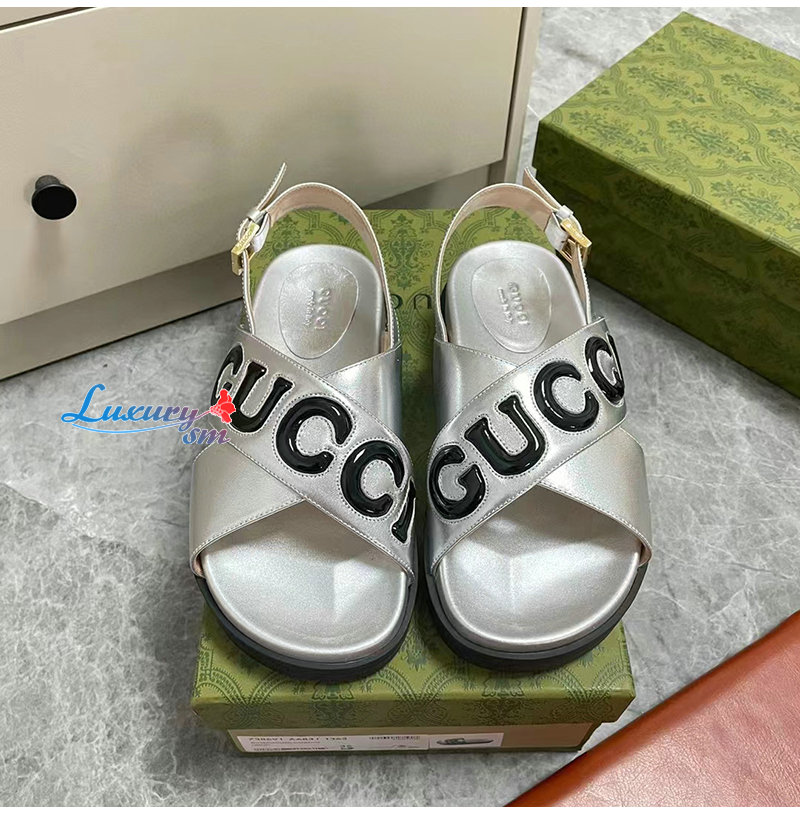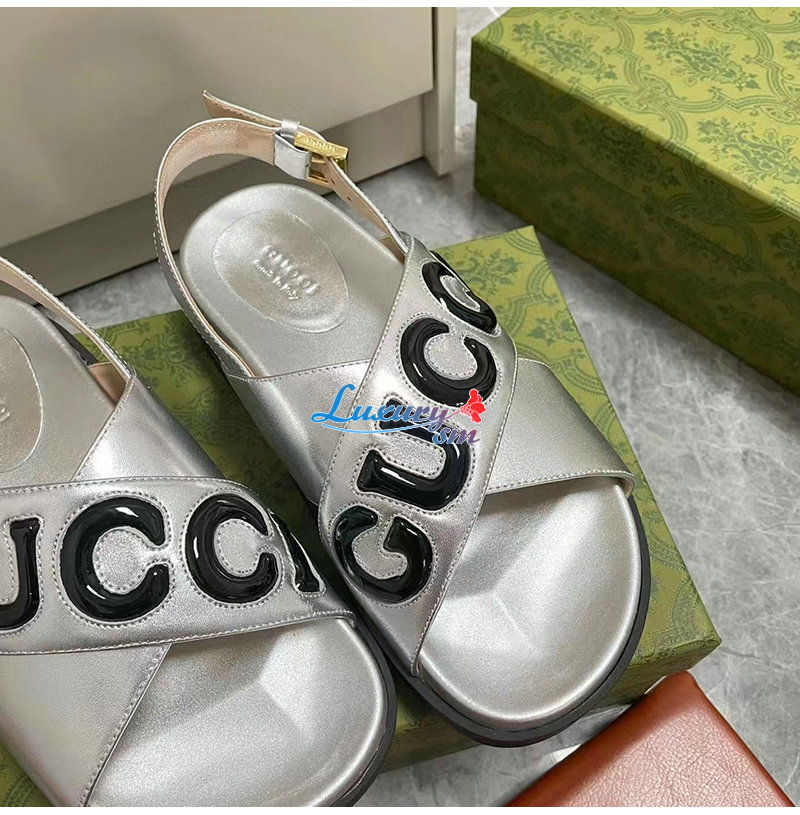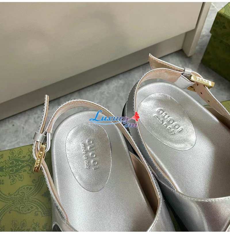 GUCCI-738691 8149 구찌 실버 가죽 샌들 여성용
