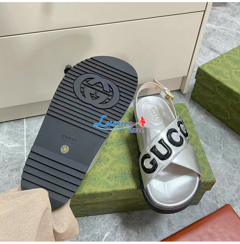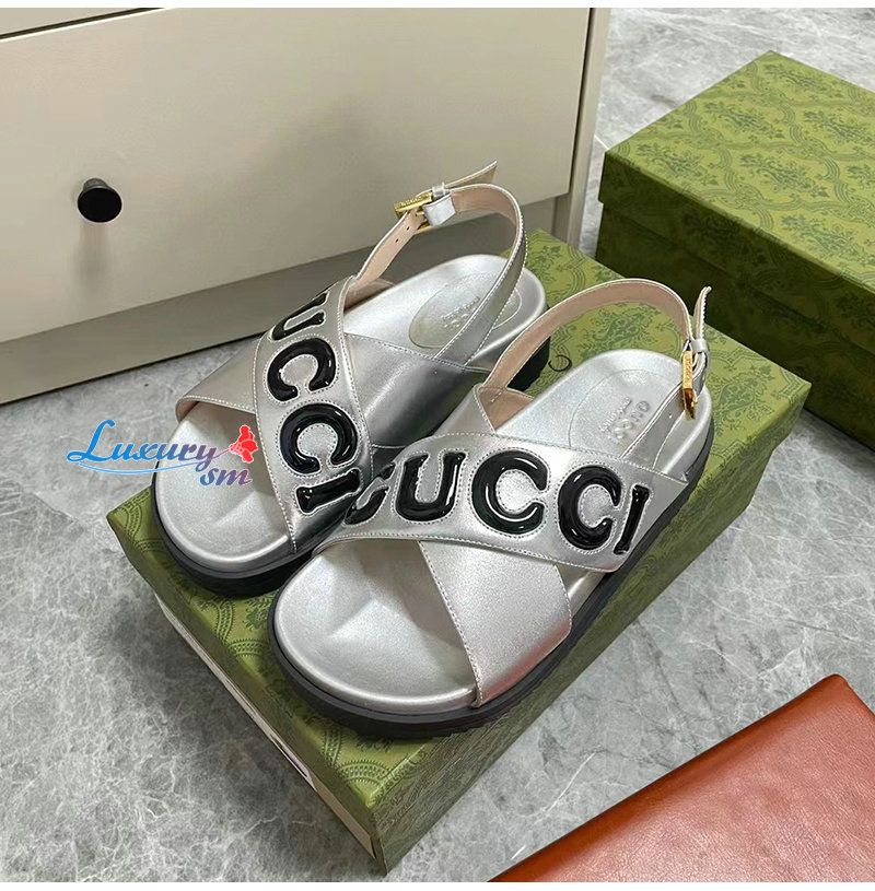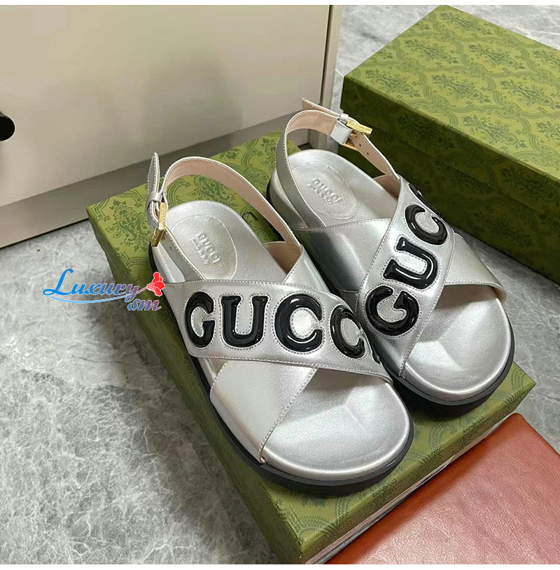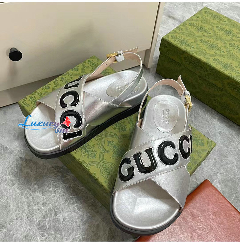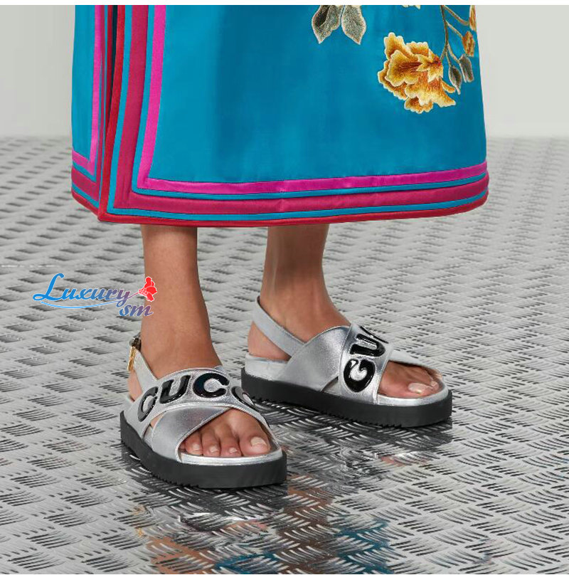 GUCCI-738691 8149 구찌 실버 가죽 샌들 여성용