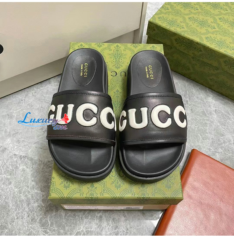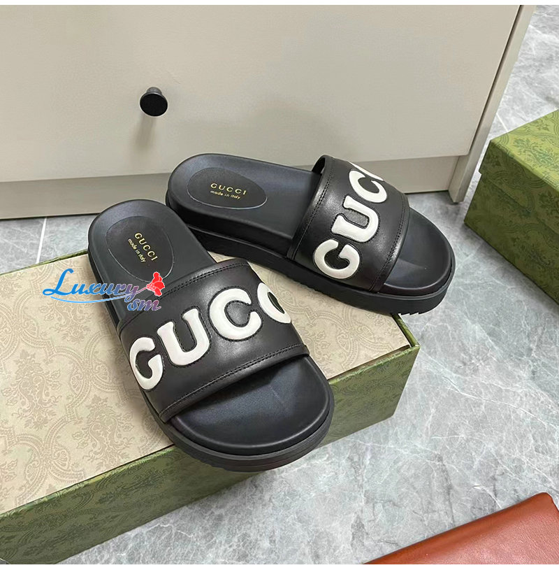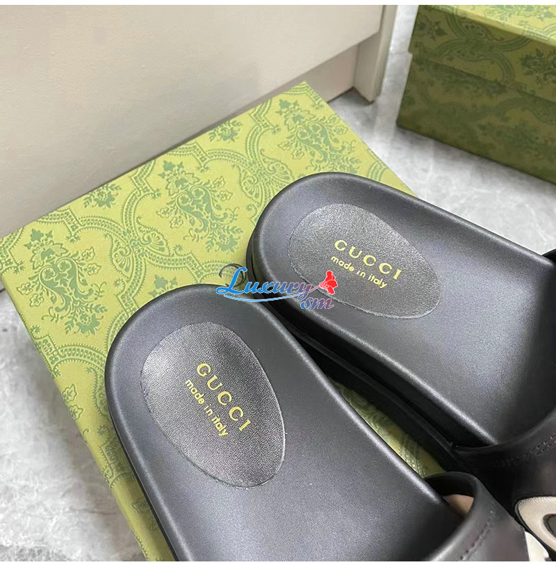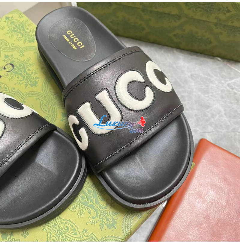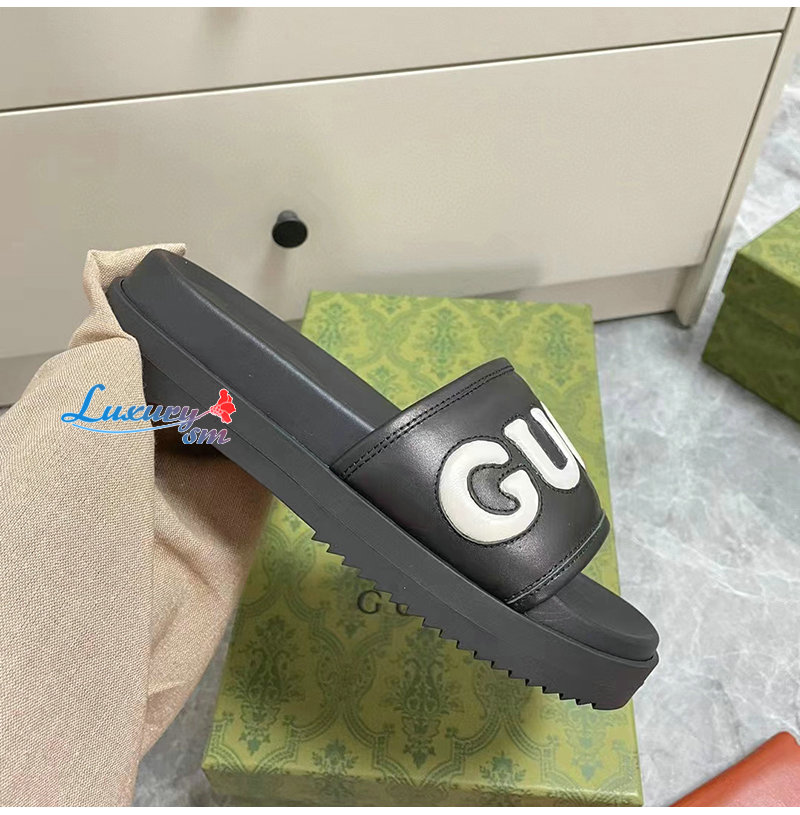 GUCCI-742009 1347 구찌 블랙 가죽 슬라이드 샌들 여성용