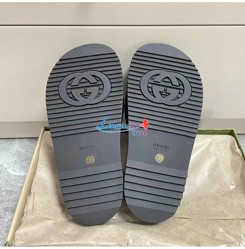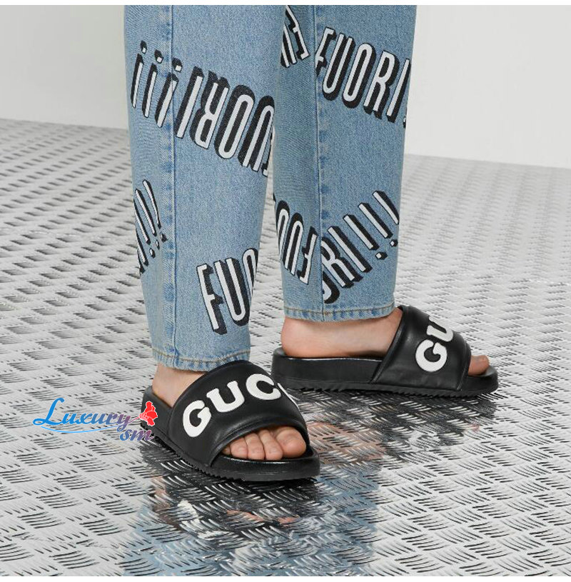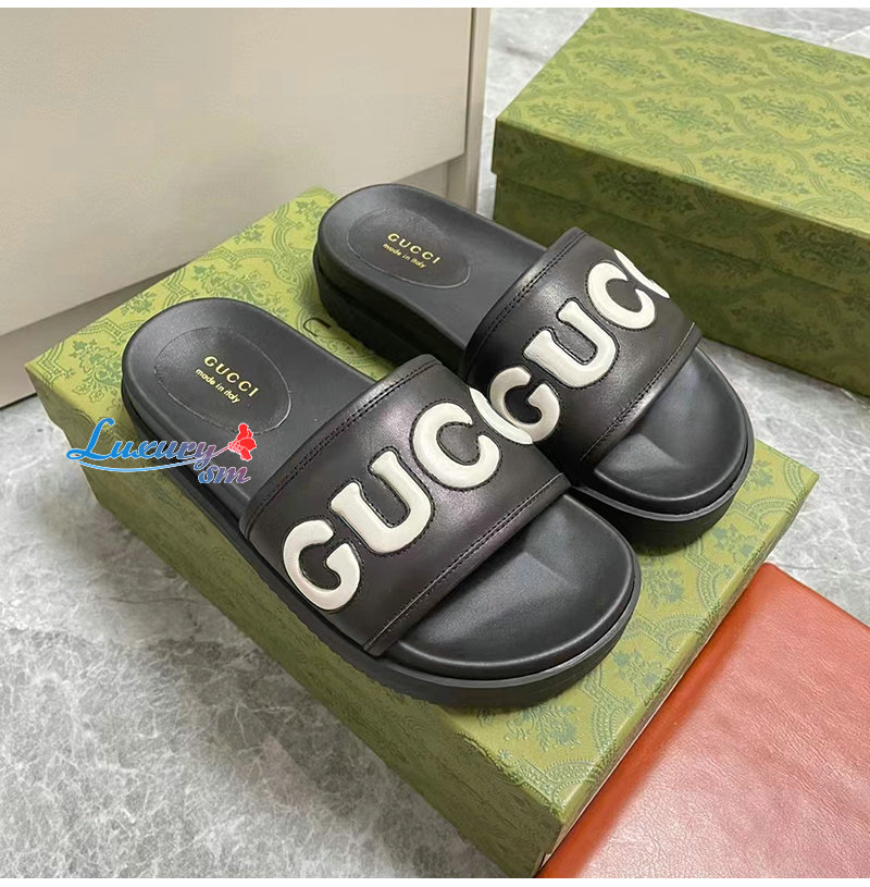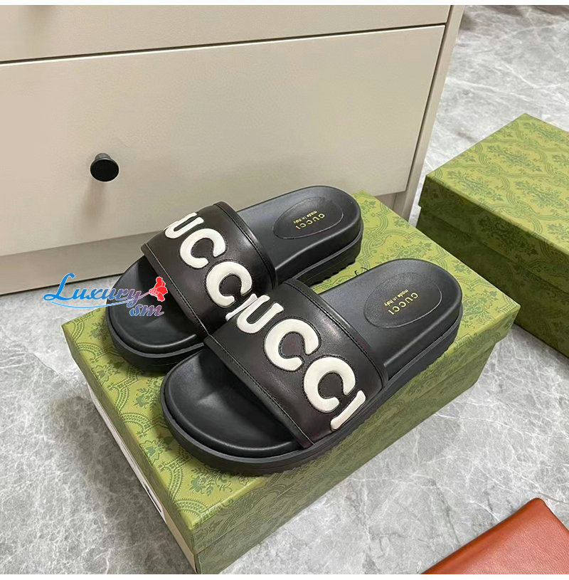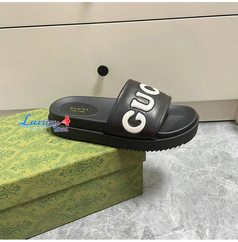 GUCCI-742009 1347 구찌 블랙 가죽 슬라이드 샌들 여성용