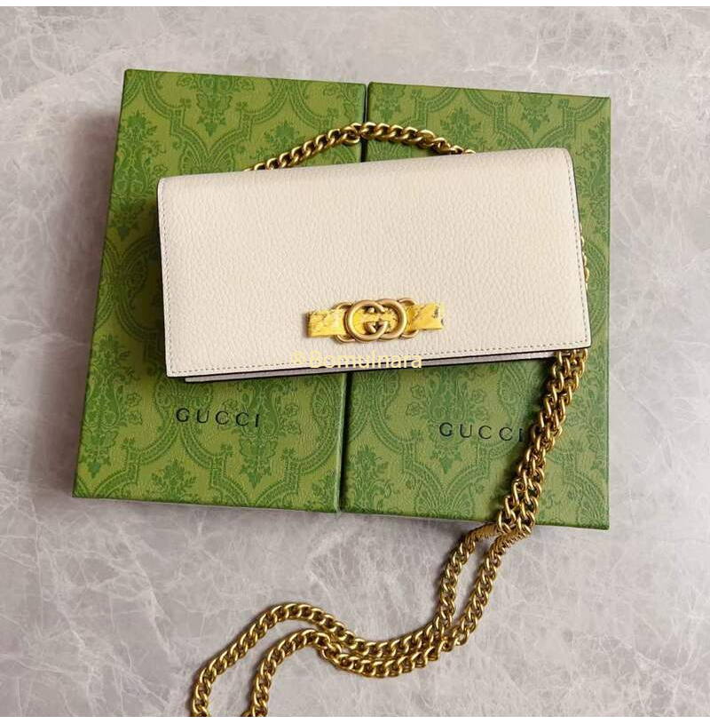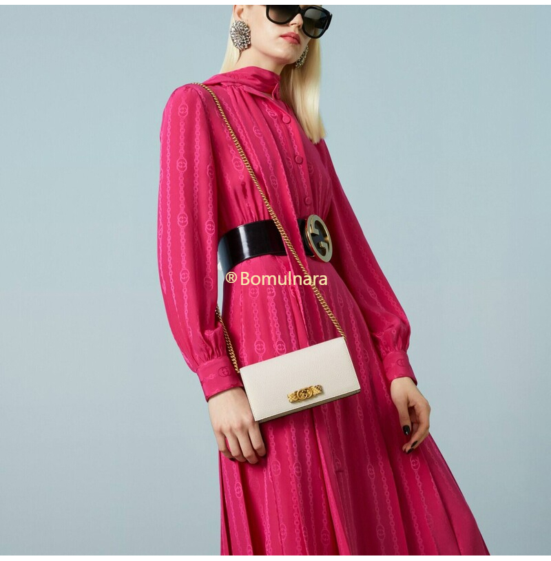 [스페셜오더]GUCCI-746056 5741 구찌 라이트 핑크 인터로킹 G 파이톤 보우 체인 지갑