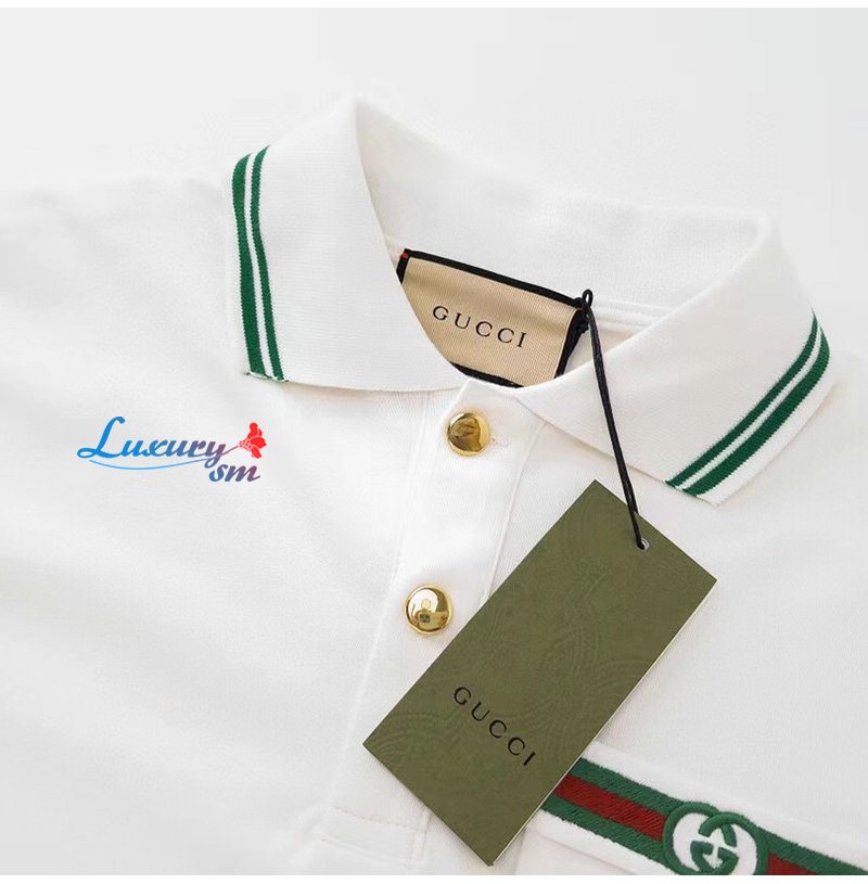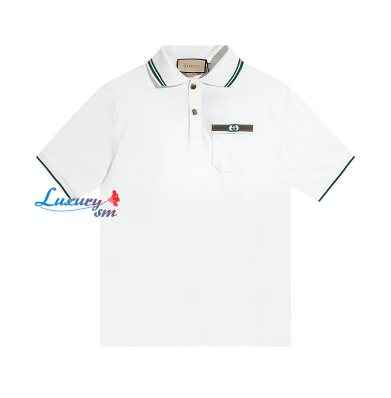 GUCCI-06086 구찌 화이트 스트라이프 장식 폴로 티셔츠 남성용