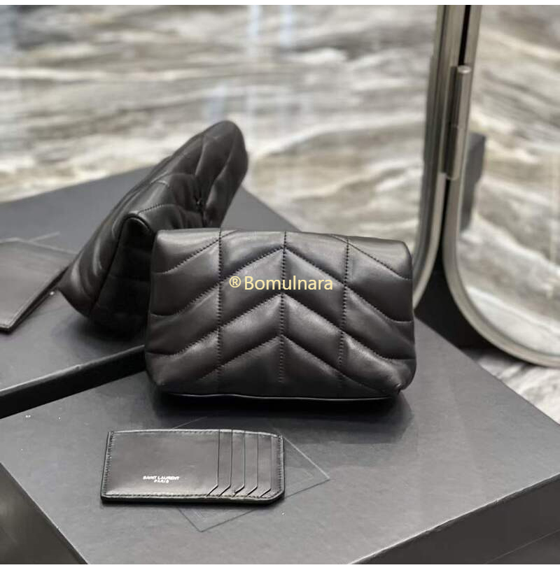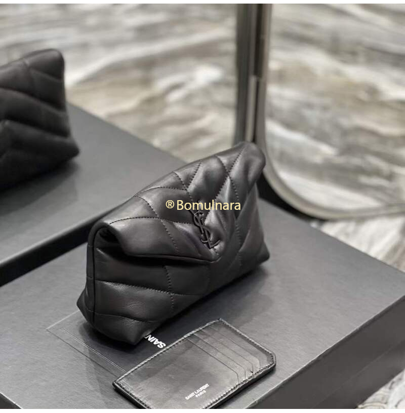 [스페셜오더]SAINT LAURENT-650880 생 로랑 블랙 램스킨 퀼티드 실버 퍼퍼 스몰 파우치