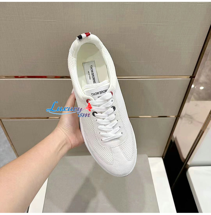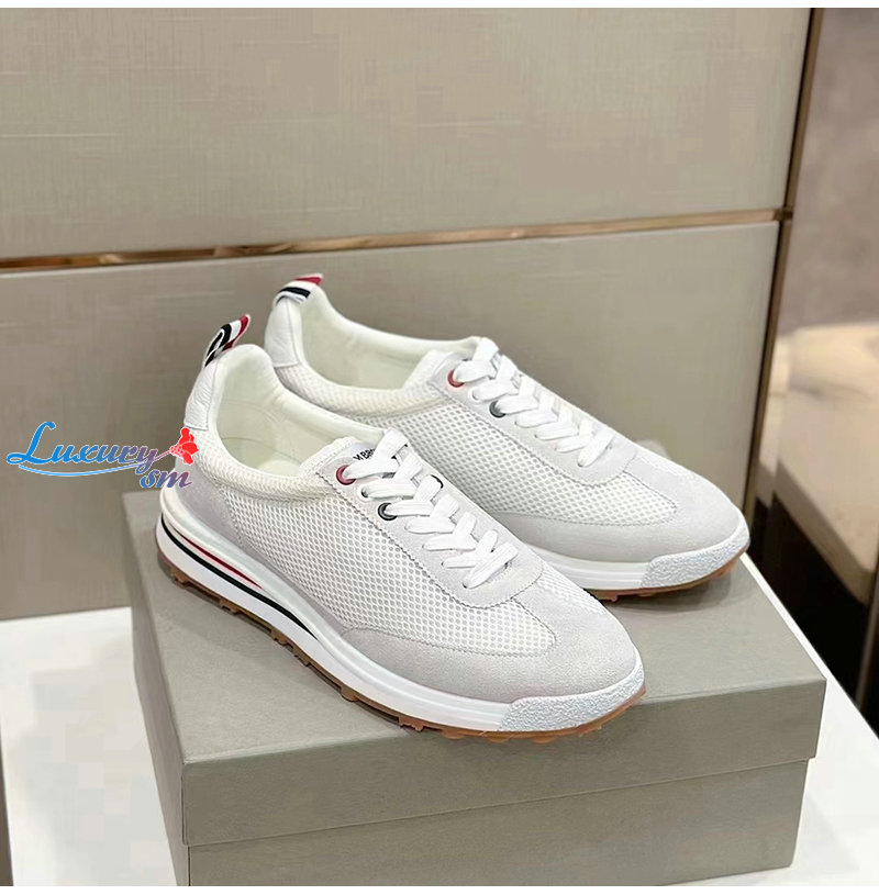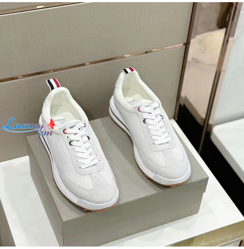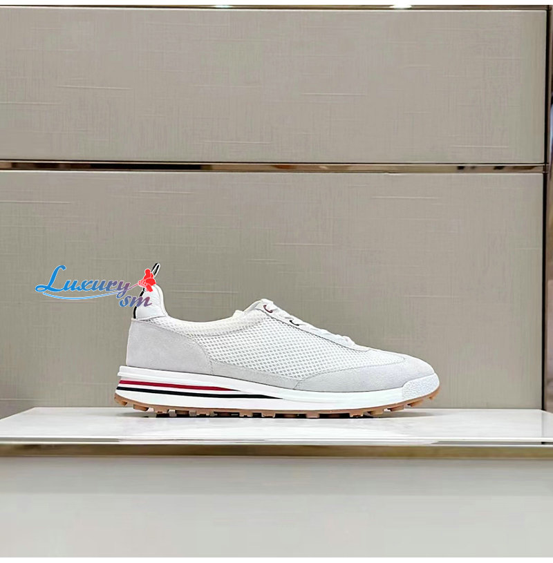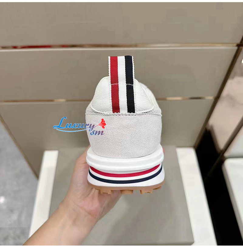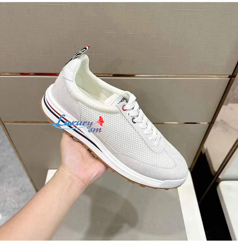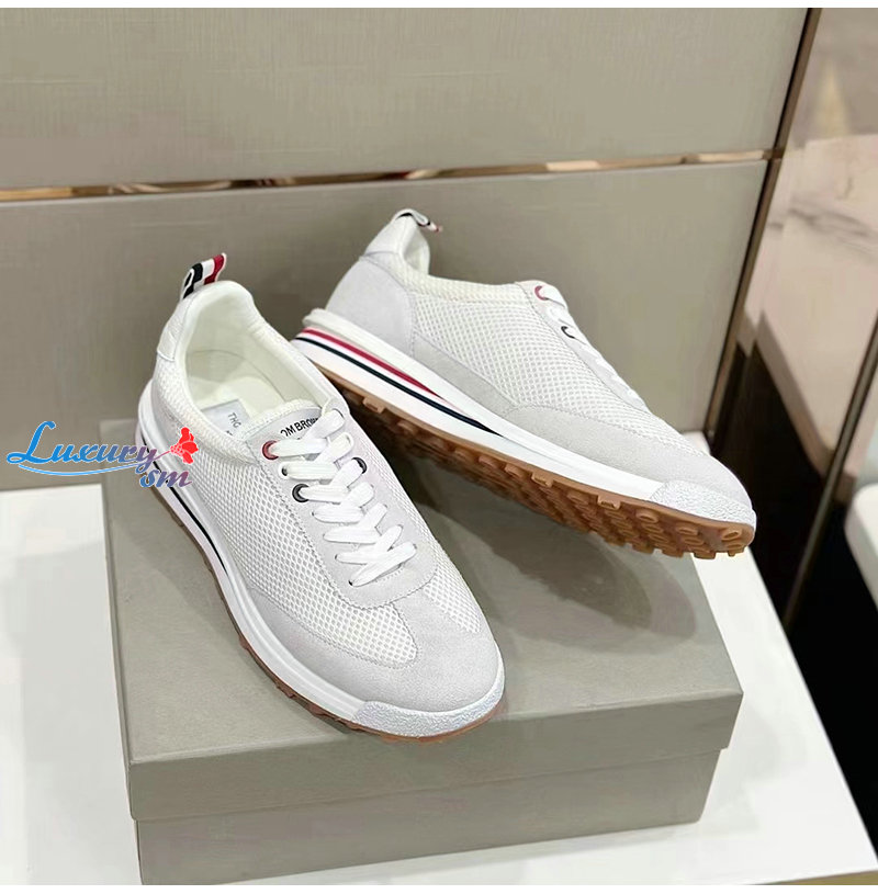THOM BROWNE-MFD180B 톰 브라운 화이트 로우탑 패널 스니커즈 남성용