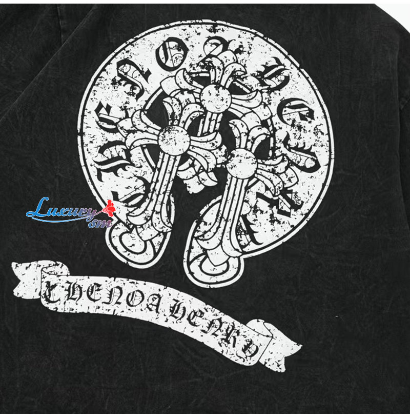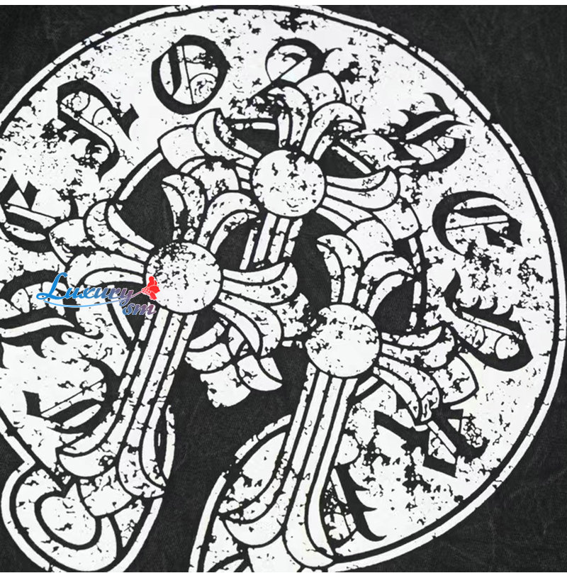 CHROMEHEARTS-06151 크롬하츠 블랙 프린트 장식 워싱 빈티지 티셔츠 남여공용