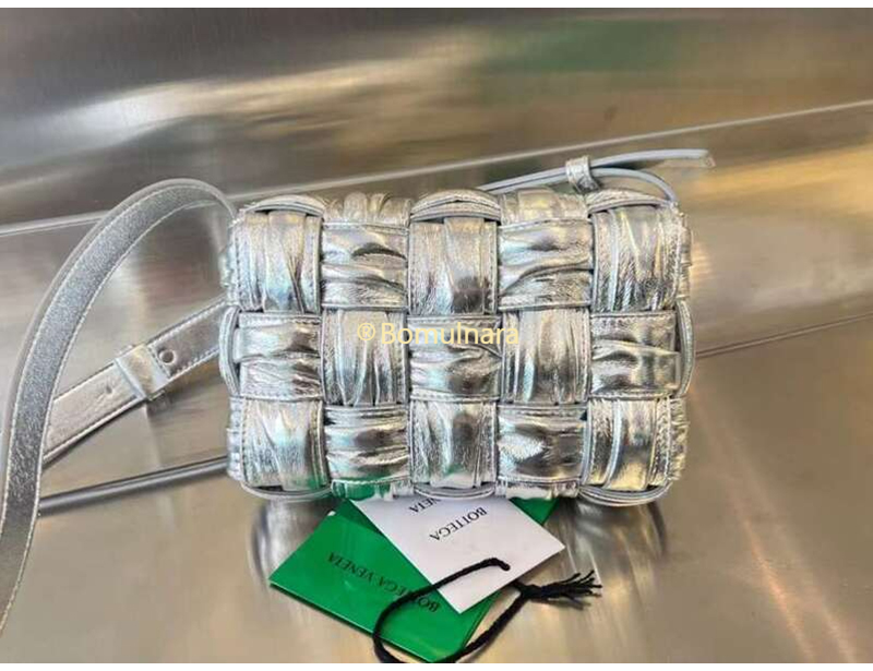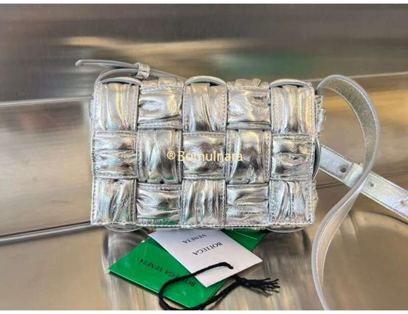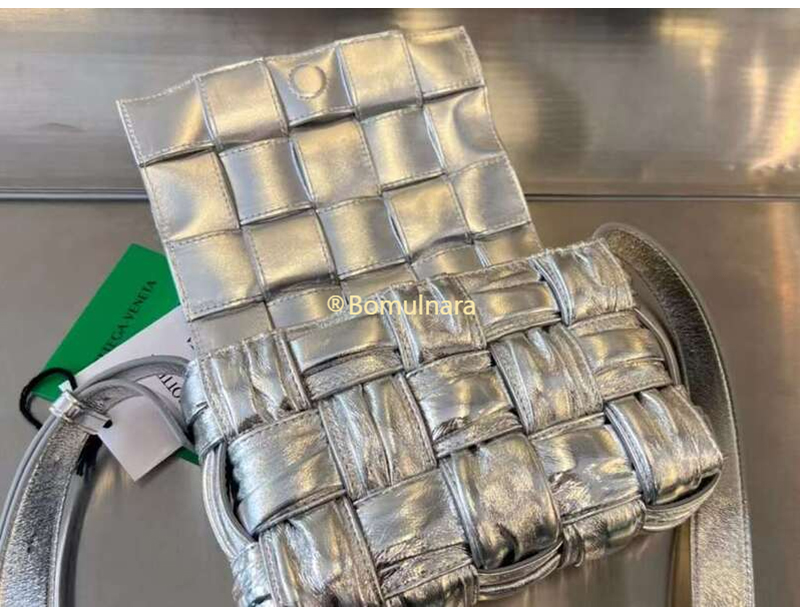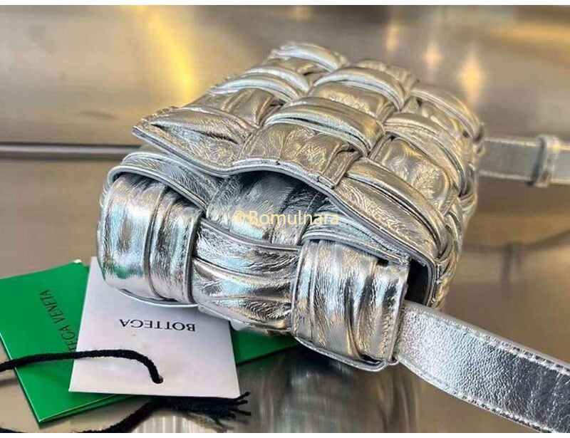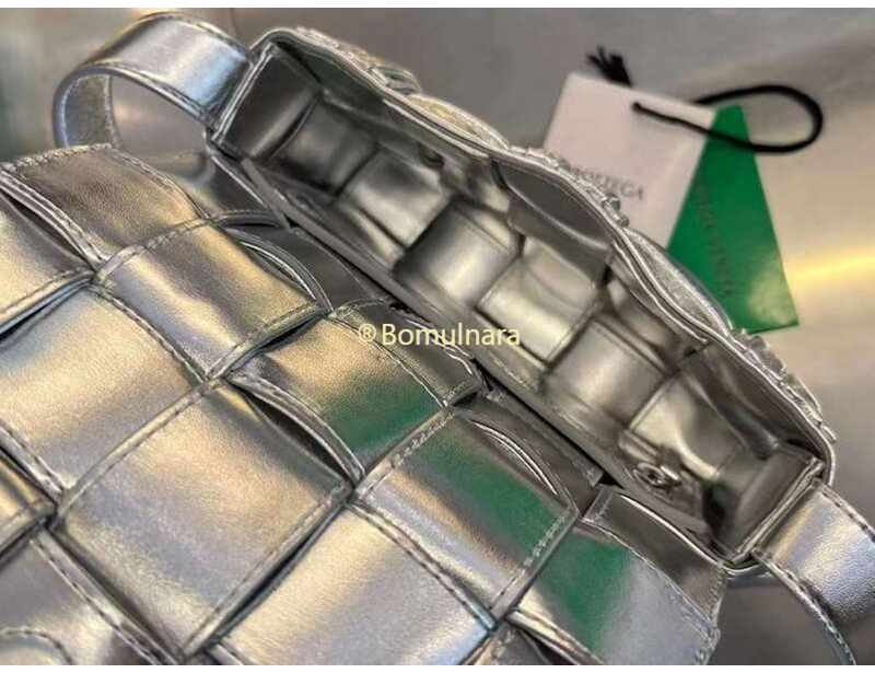 [스페셜오더]BOTTEGA VENETA-736253 보테가 베네타 메탈릭 실버 풀라드 인트레치오 스몰 카세트 백 19CM