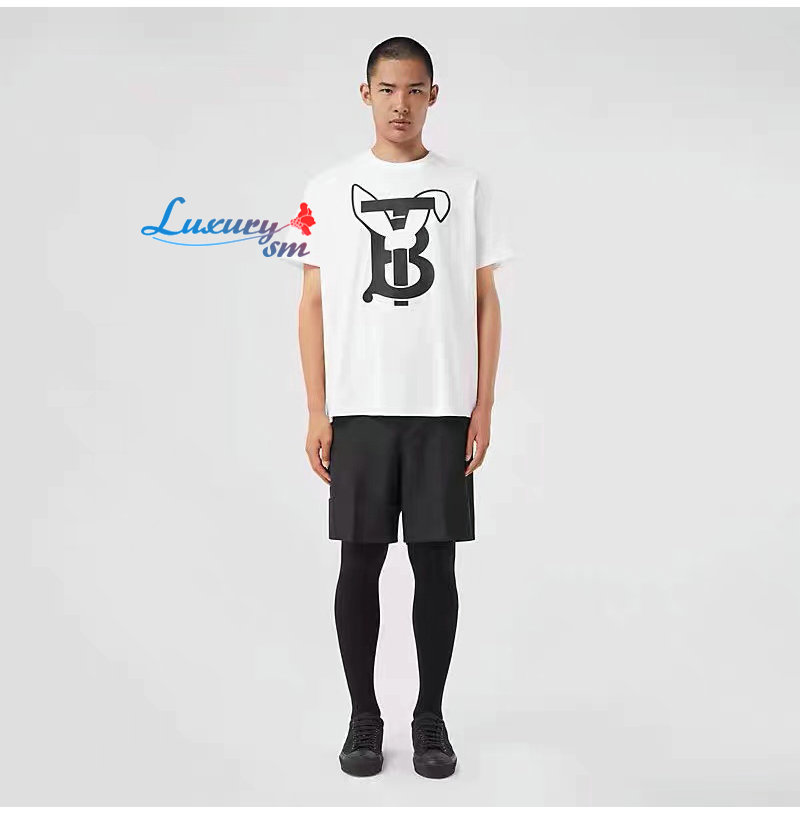 BURBERRY-06193 버버리 화이트 TB 로고 프린트 장식 티셔츠 남성용