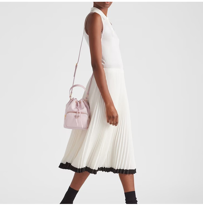부드럽고 현대적인 형태의 프라다 듀엣 버킷백