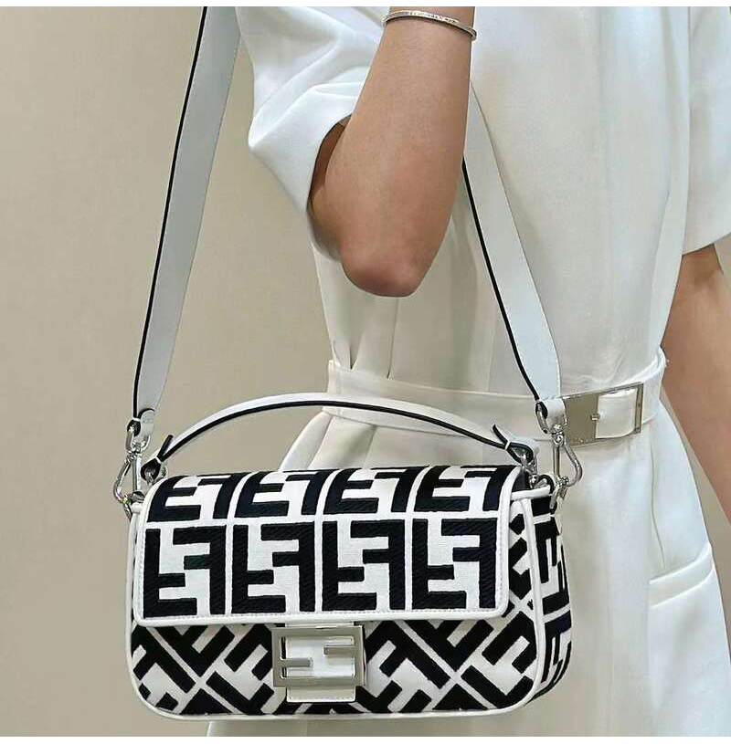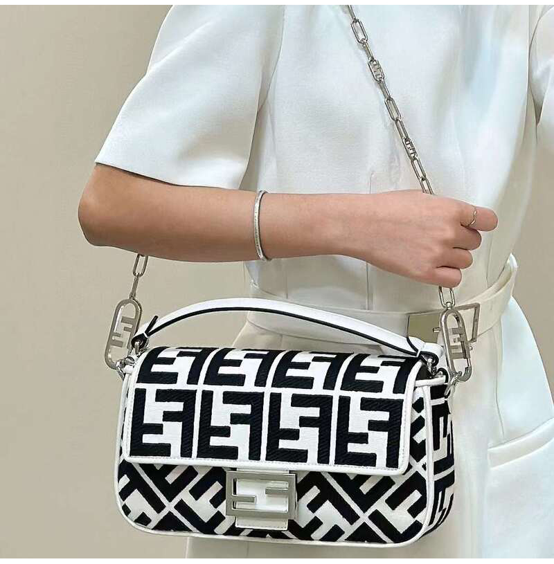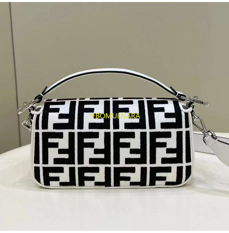 [스페셜오더]FENDI-8BR600 펜디 화이트 FF 글레이즈 패브릭 인레이 미디엄 바게트 백