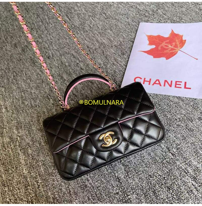[스페셜오더]CHANEL-AS2431 샤넬 22S 블랙/핑크 램스킨 골드 플랩 미니 탑핸들 백